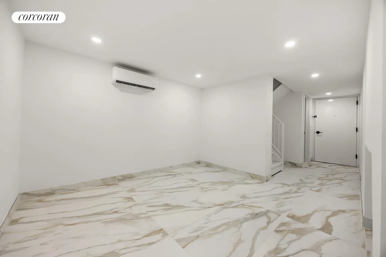 The main level features two full bathrooms, while the lower level offers a generous recreation room with high ceilings. This blank space could be used as a home gym, office, media room, or play space. A powder room and in-unit washer/dryer hookup add even more convenience.