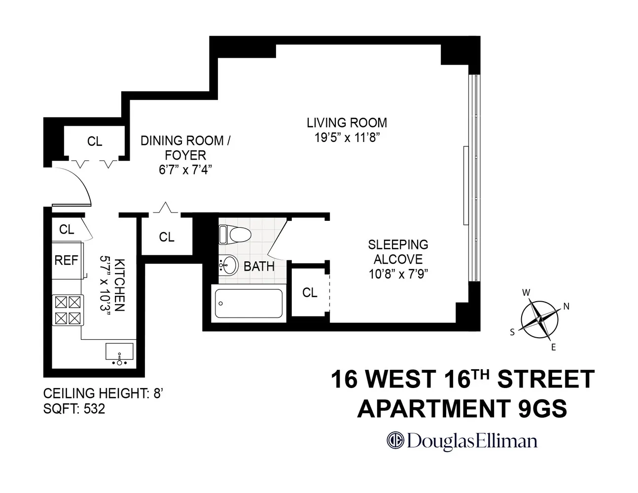 Welcome to residence 9GS at the Chelsea Lane, a highly sought-after full-service co-op located on West 16th Street between 5th and 6th Avenues. This generously proportioned alcove studio offers a flexible layout with a separate sleeping area, making it feel more like a one-bedroom.