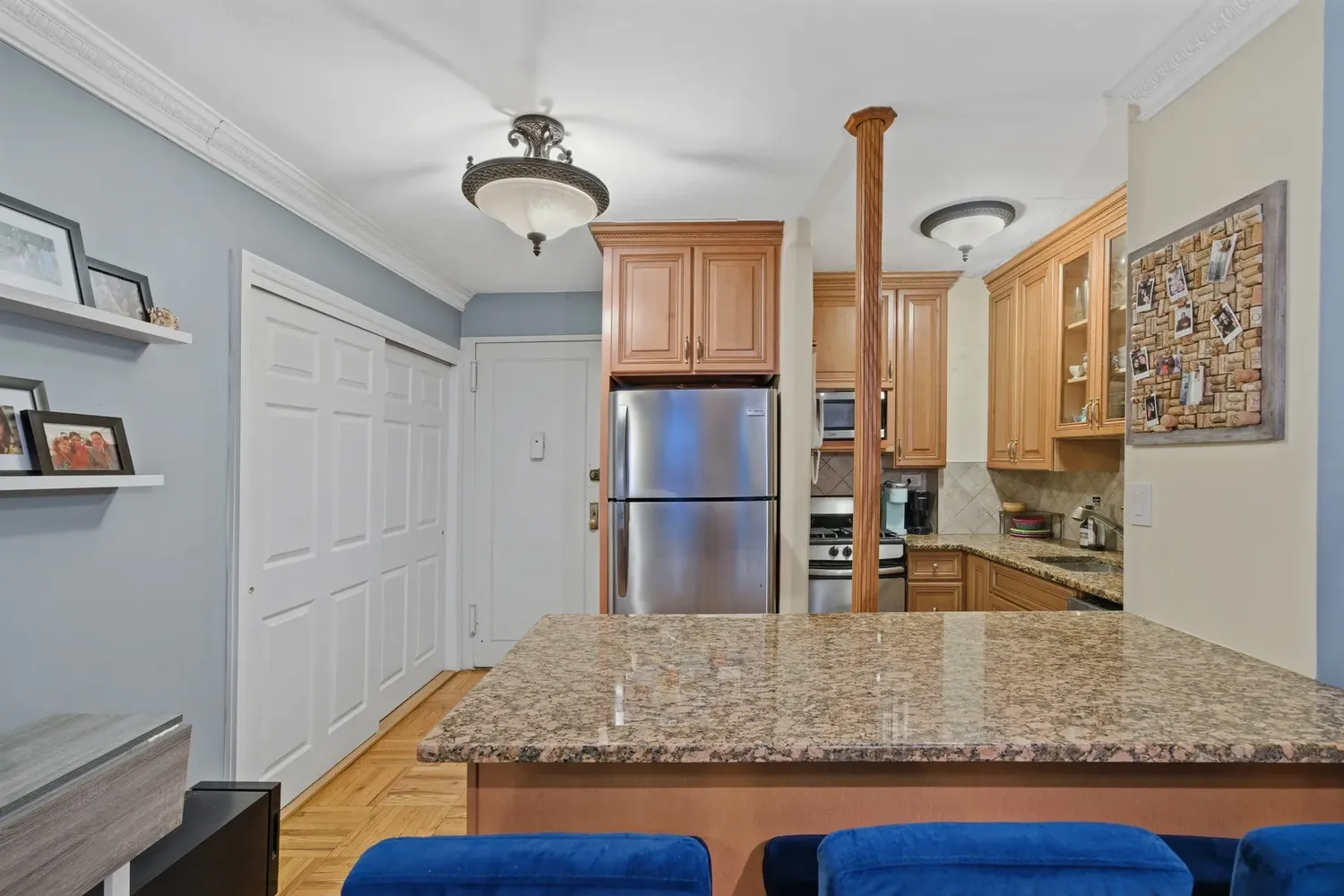 showing bу appointment with 24 hours notice This flexible co‐op offers a rare level of convenience and freedom: pieds-a`-terre are welcome, and subletting is both immediate and unlimited. The building features a live-in superintendent, Butterfly video intercom system, and a central laundry room. Parents may purchase for children, co-purchasing is allowed, and pets are permitted with an interview. Investors are welcome. The F-line layout is exceptionally functional. Upon entering, a large coat closet sits to your left, while an updated kitchen with dark wood cabinetry and stone countertops is on your right. A well-proportioned island accommodates three stools, offering additional seating and workspace. This apartment is in great condition with low monthly costs. The dining/living room is enhanced by three west-facing windows that fill the space with natural light. There is ample room for a dining area as well as a dedicated desk setup for those who need a home office. A closet is conveniently located near the bathroom, and the bedroom offers a nicely sized closet as well. The bedroom comfortably fits a queen-size bed, nightstand, and dresser. Prime location! Just outside the building, you’ll find a vibrant selection of restaurants, cafe´s, and nightlife. You are within easy walking distance to Madison Square Park, Flatiron, Union Square, Grand Central, Herald Square, Penn Station, the UN, and Park and Madison Avenues. Transportation is effortless with the 6 train just two blocks away. Eataly, Trader Joe’s, Fairway, and countless essential services are all nearby. Actual and staged photos shown.