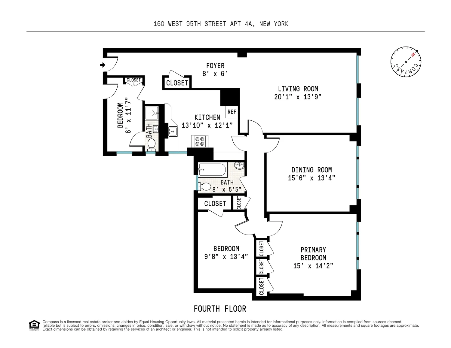 Apartment 4A spans approximately 1,500 square feet and presents a rare opportunity to create a sophisticated urban sanctuary in a coveted NYC neighborhood. While ready for some thoughtful updates, the apartment’s flexible layout and exceptional bones provide endless potential. A gracious entry foyer opens to a sweeping light filled living room positioned adjacent to the formal dining room. The windowed eat in kitchen, accessible from both the foyer and hallway, adjoins a flexible small third bedroom with an en-suite bathroom. Down the hall, two large bedrooms and a full bath form a private wing, and the dining room can easily serve as a fourth bedroom, office, or guest suite. With classic prewar proportions and excellent bones, the layout offers exciting potential.
