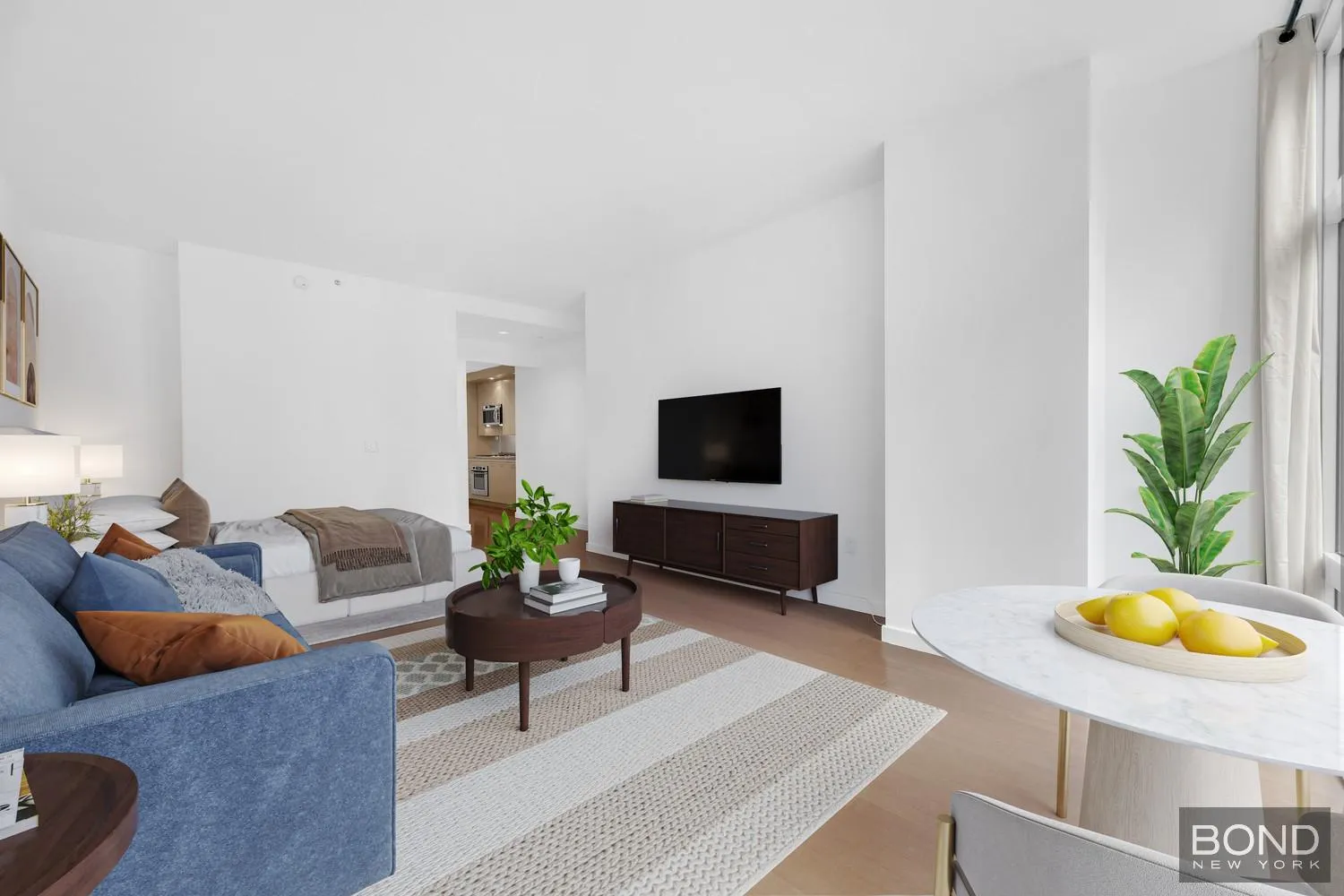 Step into Residence 12F at 1600 Broadway a sun-drenched studio that puts you right in the heart of Manhattans energy while offering a calm, luxurious retreat. Floor-to-ceiling windows frame sweeping eastern skyline views, filling the space with morning light and city sparkle.