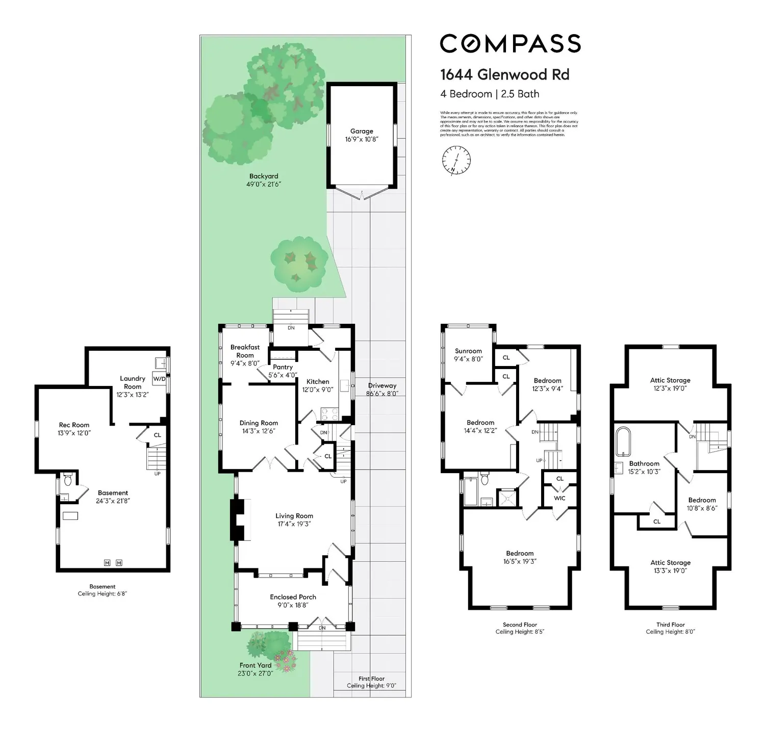 The gracious parlor floor begins with an enclosed front porch wrapped in wall-to-wall windows, setting a warm and inviting tone. Inside, a generously scaled living room centers around the fireplace, that connects to the formal dining room crowned with coffered ceilings. Just beyond, a delightful sunroom overlooks the expansive backyard, offering a tranquil retreat. The windowed kitchen, complete with a butler’s pantry, provides direct access to the sprawling private yard and a garage with original farm doors.