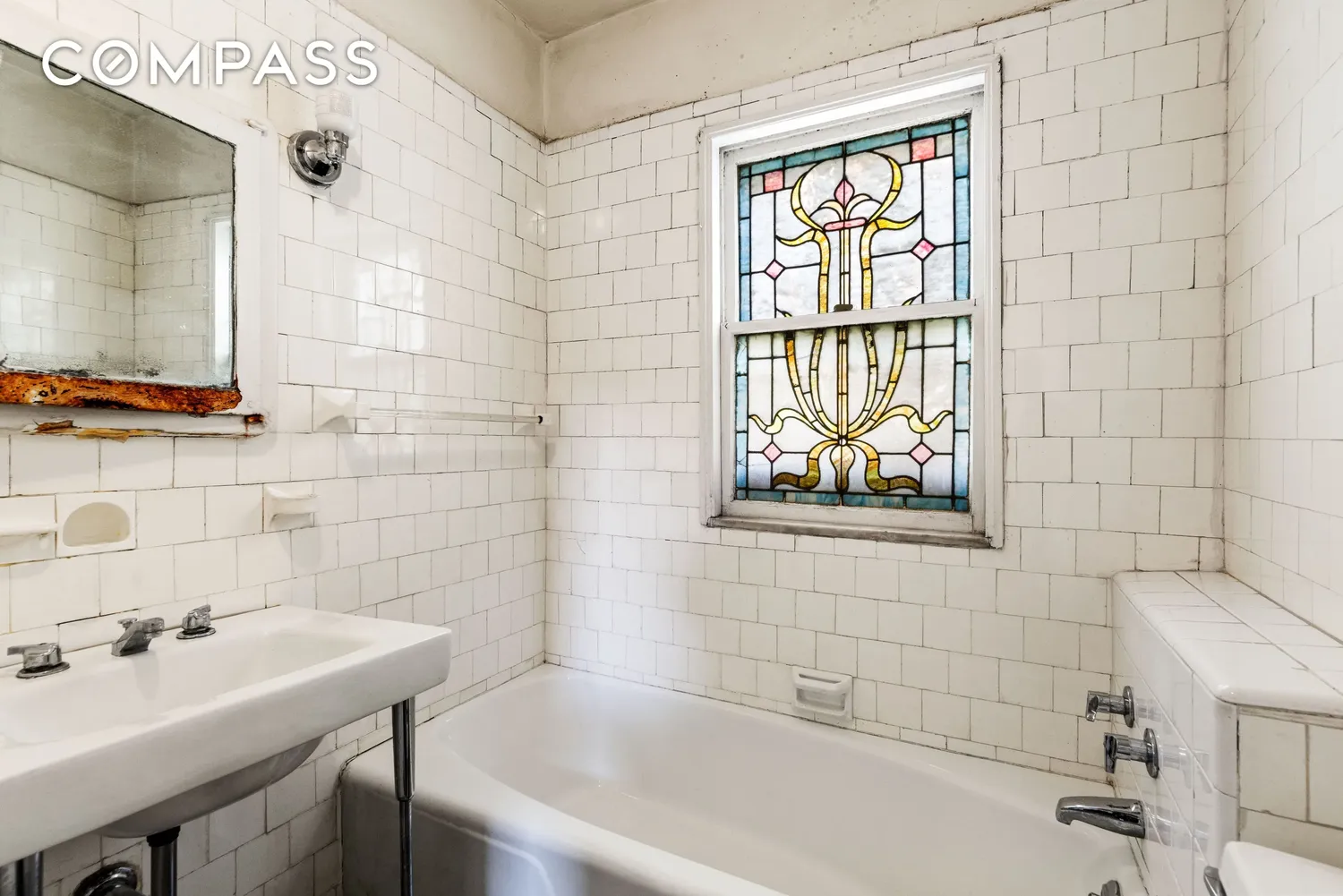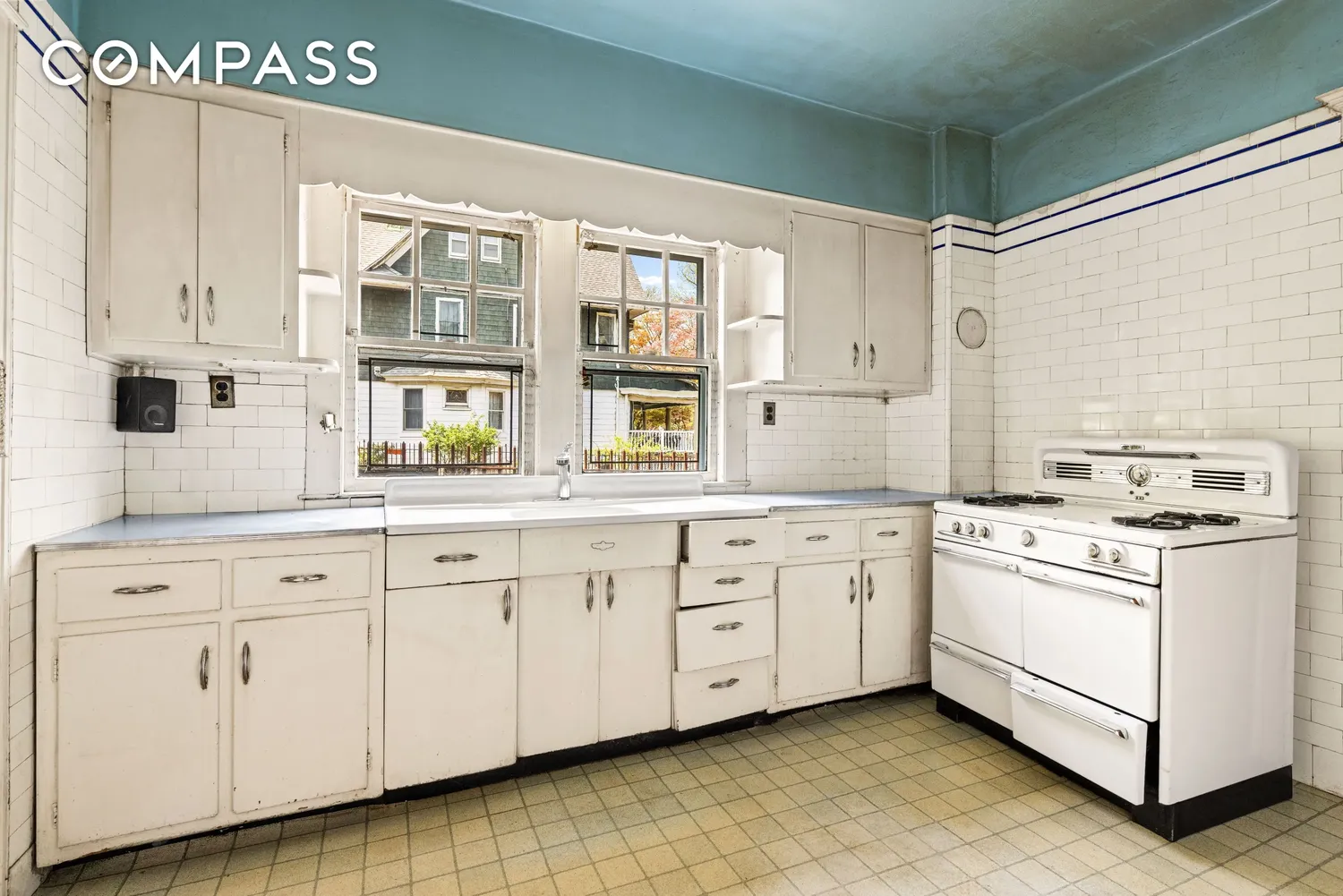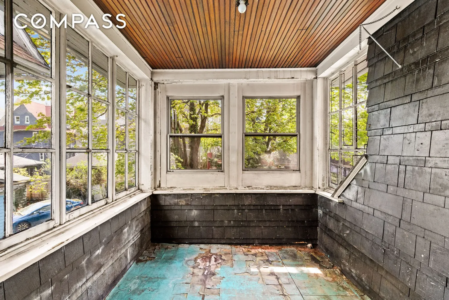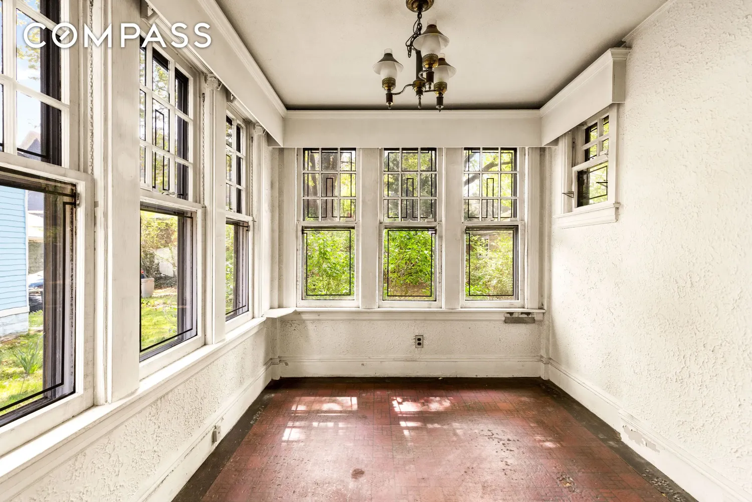 Tucked awaу at the end of a quiet cul‐de-sac on a bucolic, tree lined street in the heart of historic Ditmas Park, this enchanting five-bedroom Victorian offers a rare opportunity to create your dream home while honoring timeless architectural beauty. Brimming with potential and rich in original detail, this lovely house showcases exquisite parquet floors, stained glass windows, coffered ceilings, French doors, and a wood-burning fireplace—each element contributing to its enduring charm.