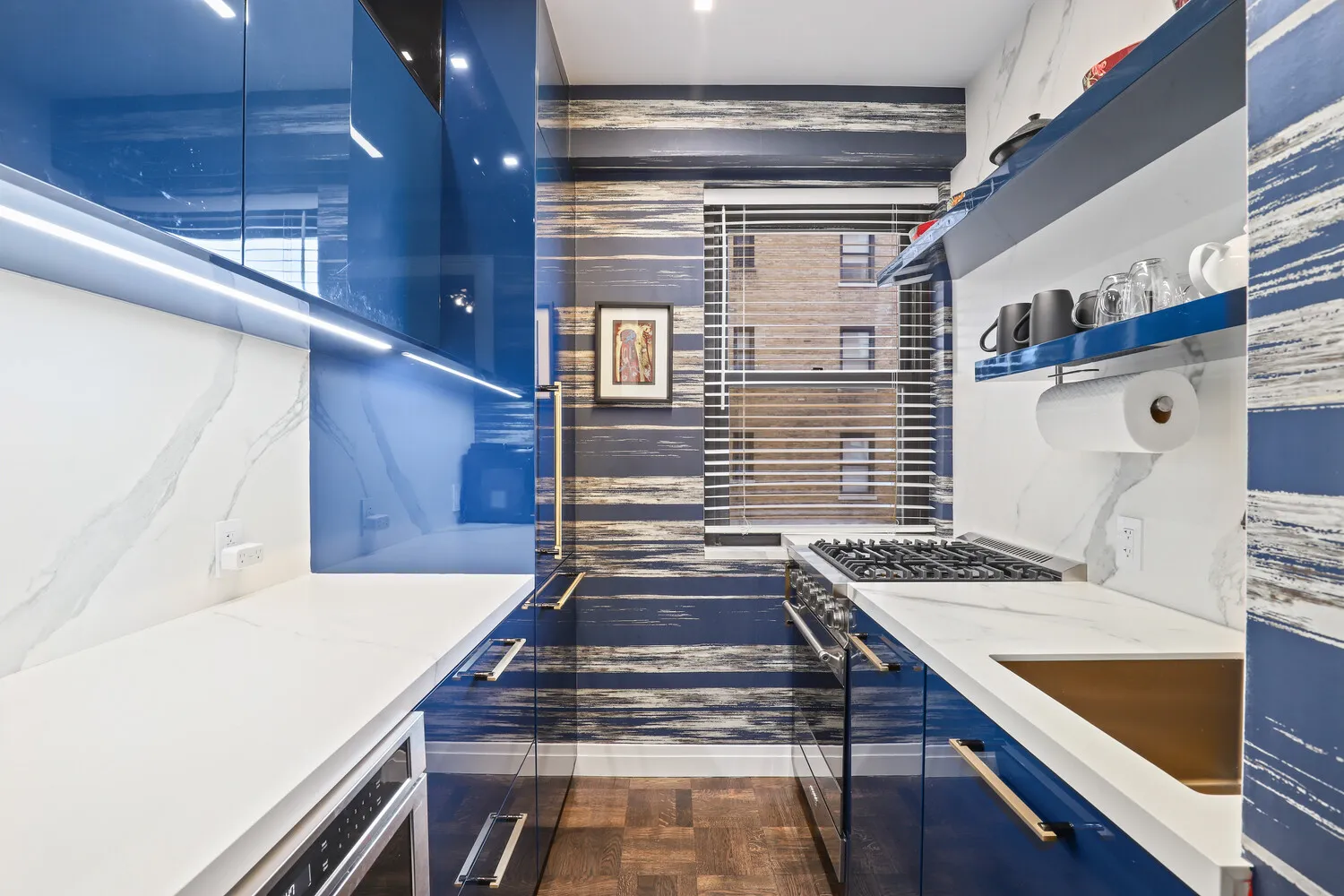 Just beyond the Elegant Entrance, with incredible Customized Closets, is the Separate Windowed custom Kitchen designed by Porcelanosa, outfitted with High End Appliances.
