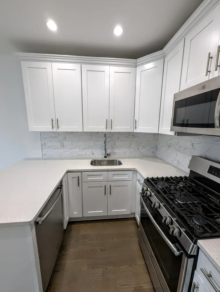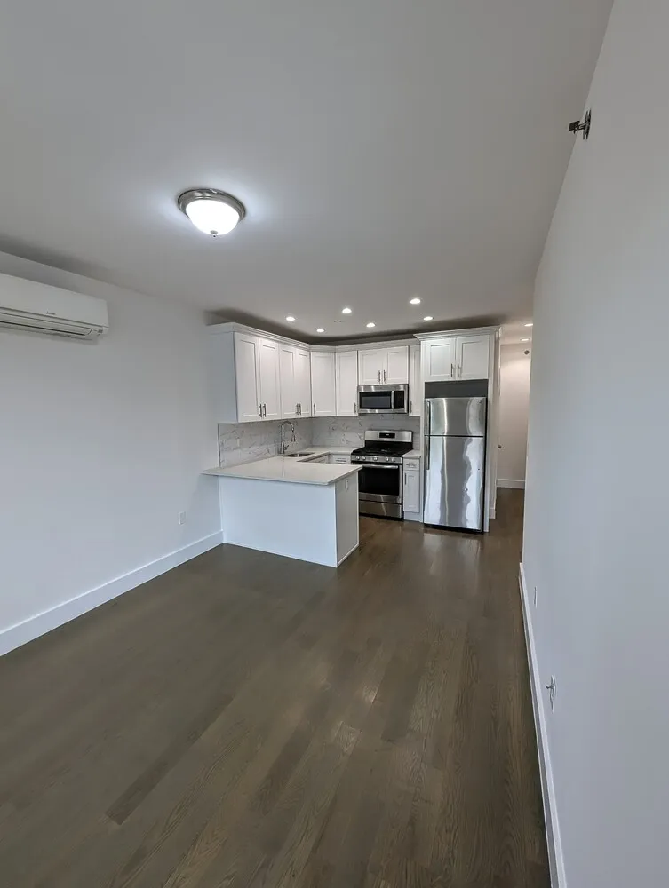 This brand new apartment offers a chef's kitchen with quartz countertops, tile backsplash, and stainless steel appliances. Enjoy tall ceilings, sun-filled living spaces, central A/C, hardwood floors throughout, recessed lighting and a fully tiled bathroom. The spacious bedroom includes ample closet space, and an in-unit washer/dryer adds modern convenience.