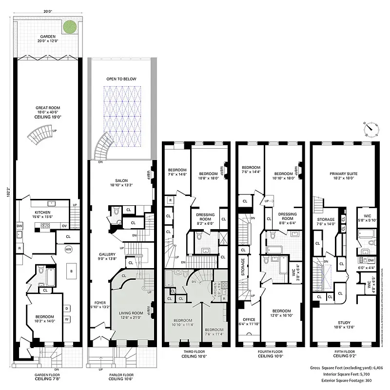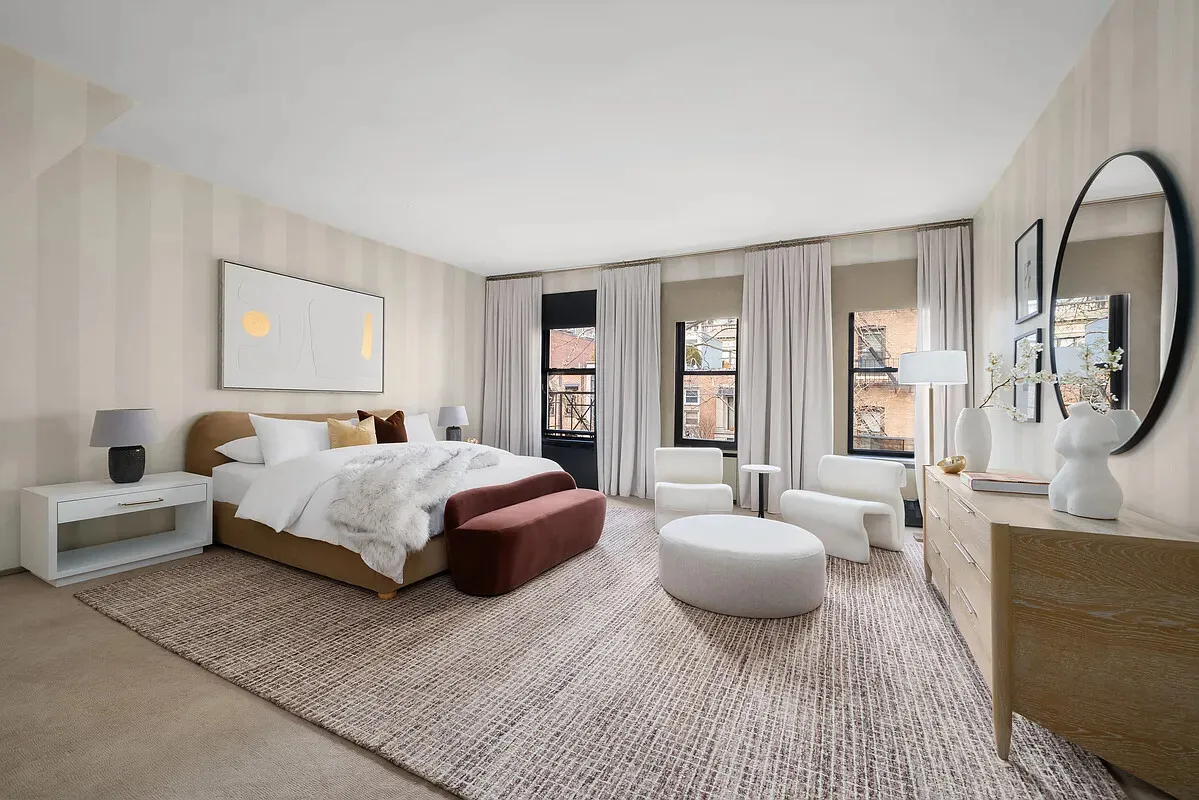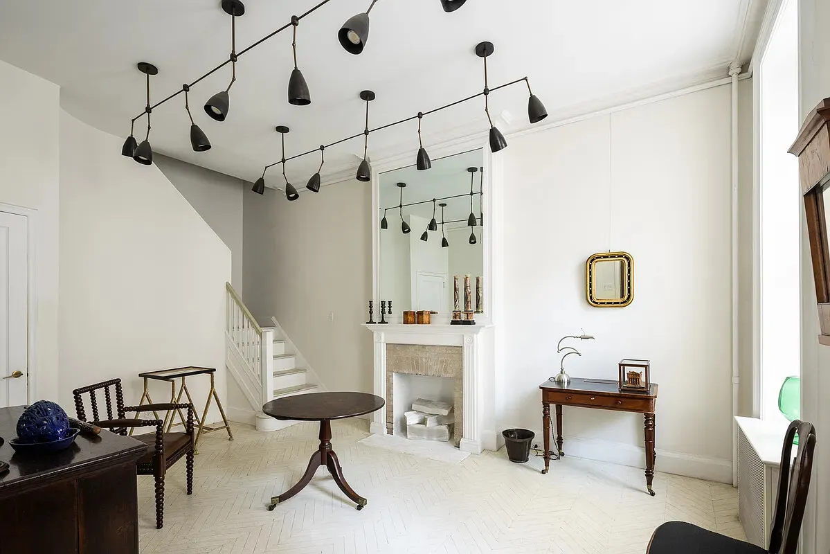 Natural light fills the home from both exposures. South-facing rooms are bright and cheerful, capturing sunlight throughout the day, while north-facing rooms enjoy soft, even light with views of treetops and open sky, creating a serene and welcoming atmosphere. Throughout the remainder of the home, ceiling heights remain generous, with approximately 10-foot ceilings on the principal floors and 9.2-foot ceilings on the top level, lending the interiors a sense of openness and classic townhouse proportion across all five stories. In total, the residence offers over eight bedrooms, six and a half bathrooms, and multiple possible configurations, allowing future owners to adapt the home to a wide range of lifestyles while preserving its remarkable character.