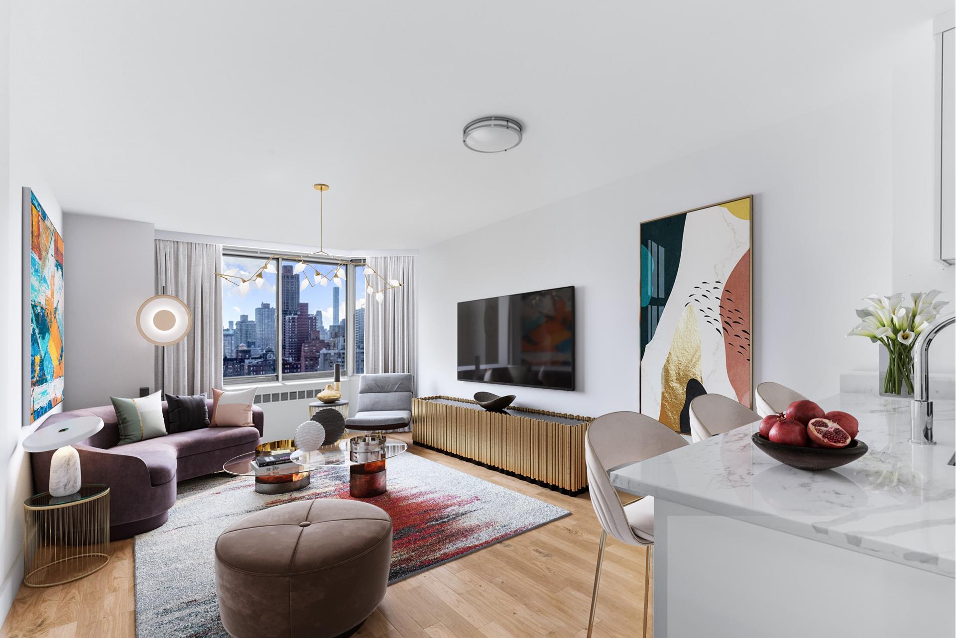 The building boasts breathtaking, uninterrupted views of Manhattan and the East River and offers a wide array of amenities including a grandiose two-story lobby, a state-of-the-art fitness center, yoga studio and business center. Notably featured are two landscaped terraces that include a luxurious sundeck, outdoor yoga space, and recreation areas as well as a spectacular sky club penthouse lounge that sits above it all. In addition, the Serrano provides fully equipped children's indoor and outdoor play areas, cold and dry grocery storage, bike storage, dry cleaning valet and on-premises parking.