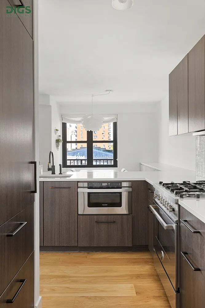 Flooded with natural light from oversized windows, this home features an open and airy layout, perfect for everyday living and entertaining. The living and dining areas flow seamlessly into an open, renovated chef's kitchen outfitted with a Bertazzoni 6-burner stove, paneled Miele dishwasher and hood, and paneled Liebherr refrigerator. Other features of this beautiful home include newly refinished 7.25" wide plank white oak floors, a deep soaking tub, fully built-out closets, a decked balcony, and an in-unit W/D.