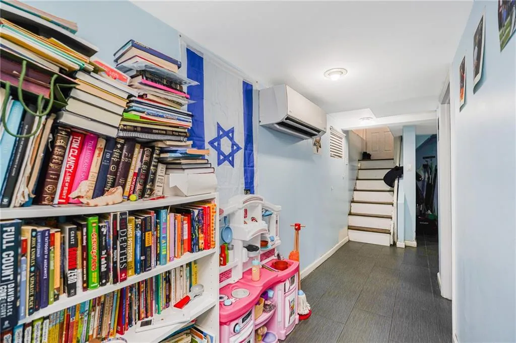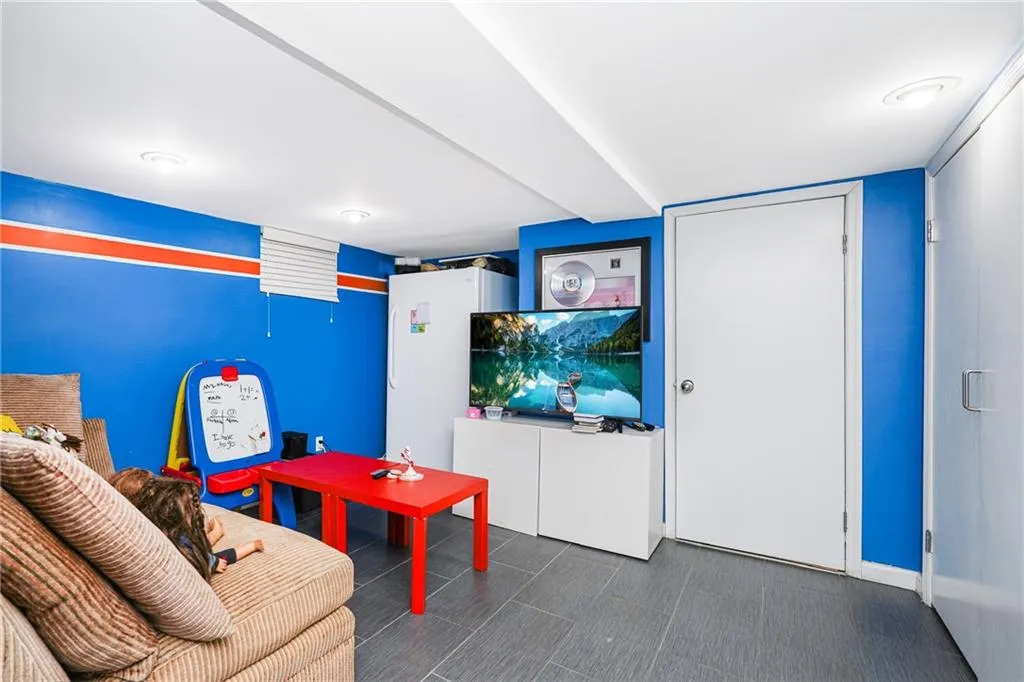 The basement includes a laundry area, an additional room, and a large playroom, offering flexible space for recreation, or work-from-home needs.
