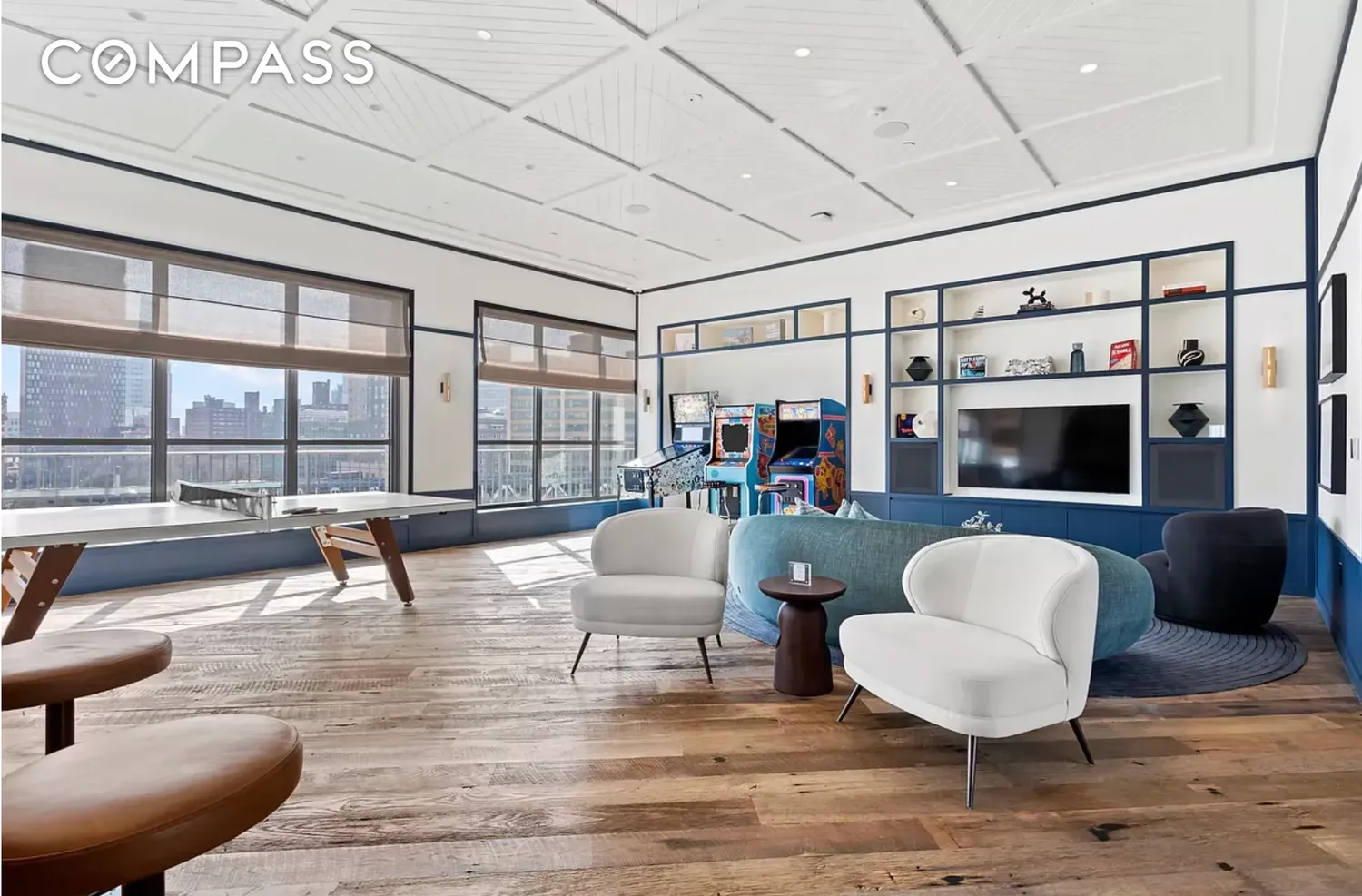 Perched 100 feet in the sky, Level Eight presents an extraordinary collection of indoor and outdoor amenities, including a wine room with private lockers, chef’s table and catering kitchen, DUMBO Bar & Billiards Lounge, coffee lounge with fireplace, co-working spaces, party lounge, children’s playroom, teen lounge and screening room, arcade, music room, and outdoor cinema.