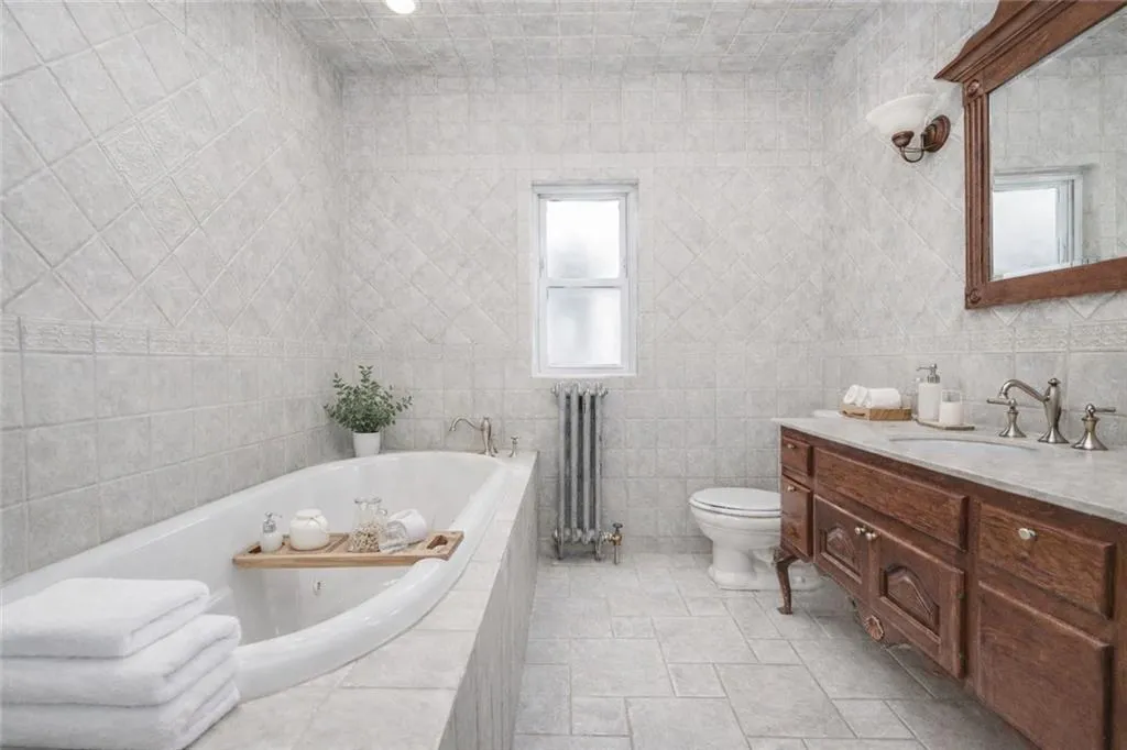 Charming 3-bedroom, 2-bathroom Tudor-style home in prime Marine Park. Turn-key condition with finished basement and private one-car garage. Enter inside to find original hardwood floors and soaring 11' ceilings in the living-room. Upper level you will find 3 nice sized bedrooms with more original hardwood flooring and a bathroom with a deep jacuzzi tub. There is a new roof which was done in 2018- with a 20-year warranty- boiler was replaced in 2022, and the hot water heater was replaced in 2024.