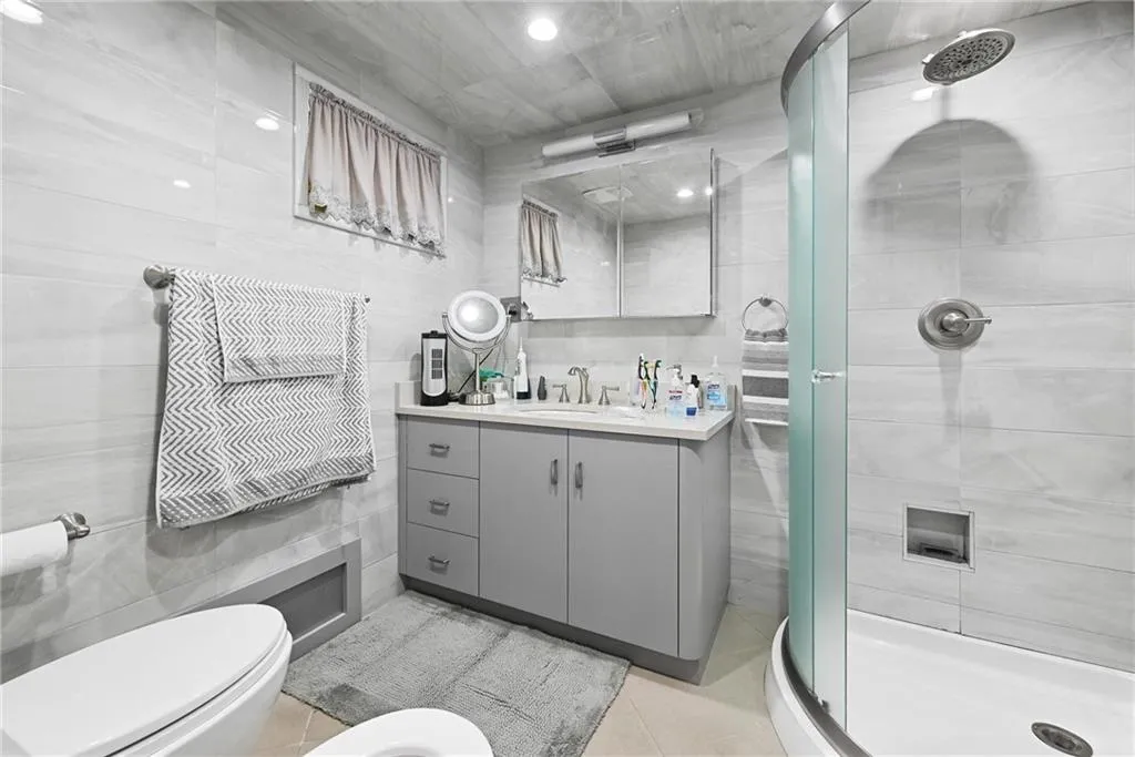 A fully finished basement provides flexible space and includes a renovated three-quarter bathroom (2022), ideal for a home office, or media room.