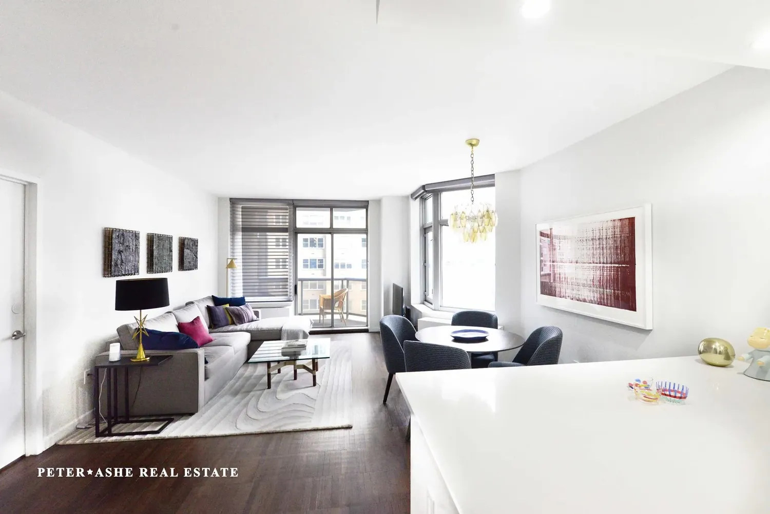 The spacious living area is enhanced by large windows and access to a private balcony—an ideal setting for morning coffee or evening relaxation.