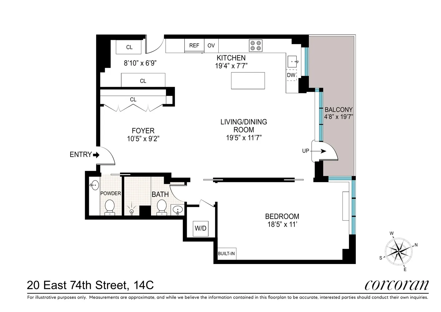 Triple Mint, Gut Renovated, High Floor 1 bedroom, 1.5 bath with large private balcony perfectly situated between Central Park and Madison Avenue.
