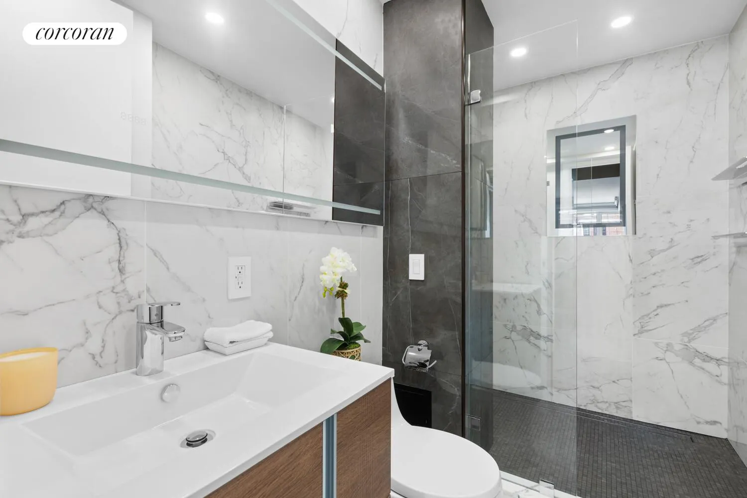 - A meticulously renovated, modern, natural light, and airy one-bedroom, one-and-a-half-bathroom residence.