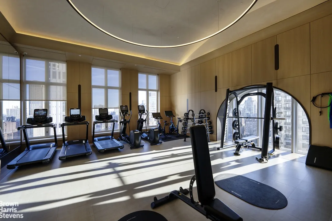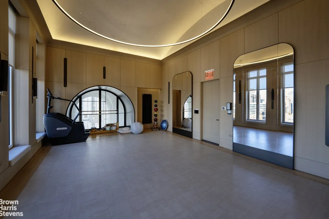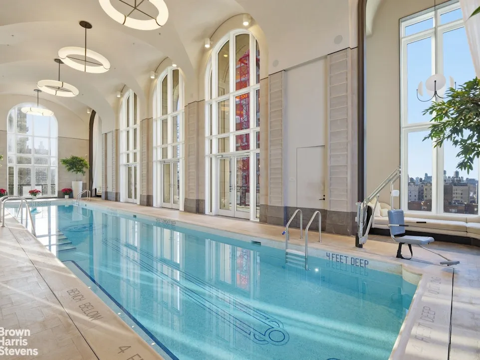Residents enjoy a show stopping 70-foot swimming pool at the center of the tower's wellness and entertainment spaces, including a fitness center, yoga room, spa with steam bath and sauna, and a Winter Garden with 20 foot ceilings, floor to ceiling arched windows, fireplace and dramatic outdoor loggia. On the ground level and lower levels a concealed automated parking system, a landscaped private garden, a library, play room, teen room and a private cinema complete the building's dedication to comfort, luxury, and thoughtful design. The lobby is attended 24 hours a day by a doorman and concierge, providing peace of mind and service at every turn.