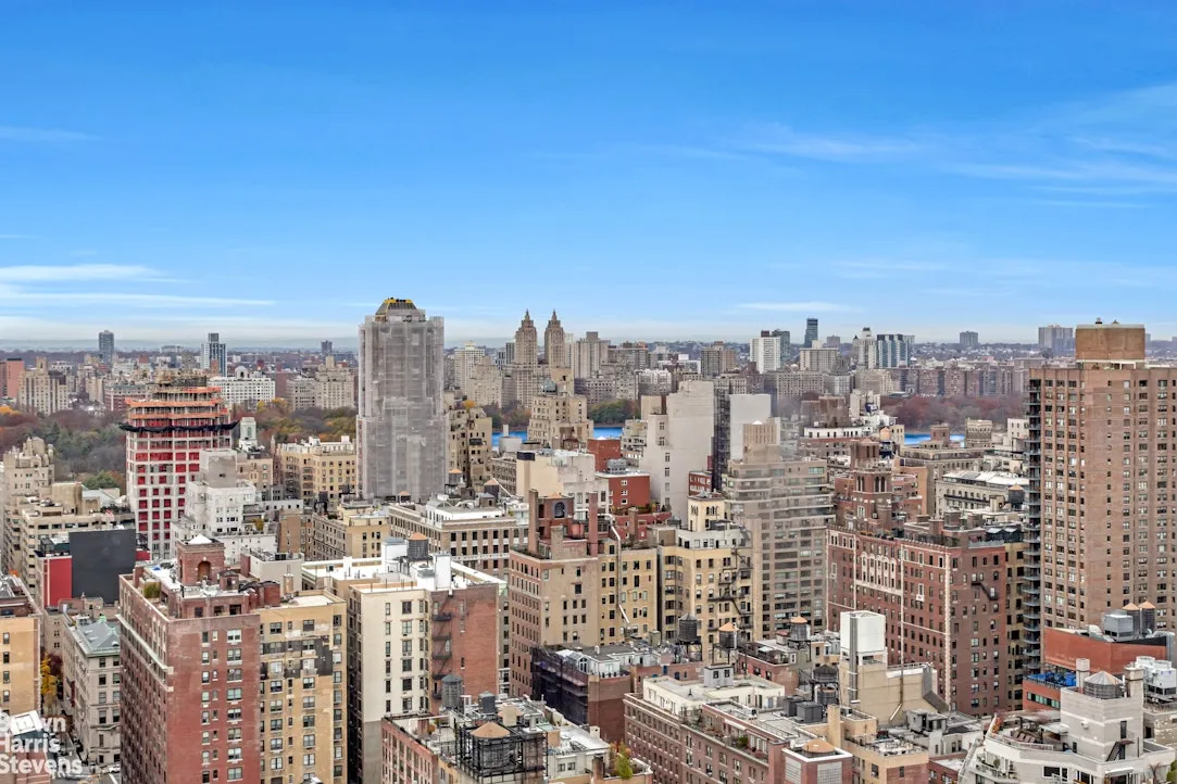 A chevron-floored gallery with streaming sun welcomes you into the home. The 29-foot-long corner living and dining-great room has enormous, nearly floor to ceiling windows which perfectly frame wide open South views of the downtown skyline and Western views of Central Park and beyond, with spectacular sunsets.