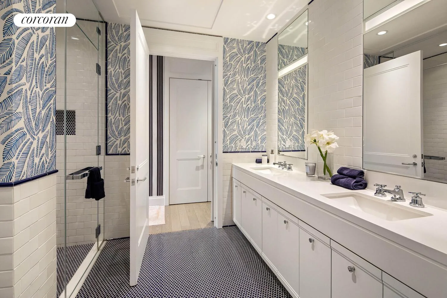 Throughout the residence, every detail has been carefully considered, from California Closets and custom woodwork to a JDAV-designed Crestron whole-house AV system that includes motorized shades and lightening. A in-unit washer/dryer and a laundry closet complete this space. A storage unit transfers with the apartment.