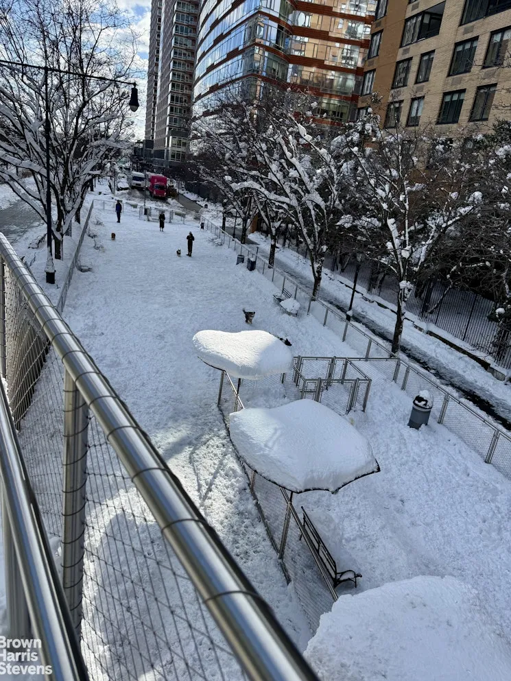 A gracious entry foyer with generous closet space creates a true sense of arrival, while the northeast-facing wall of windows pulls you into the expansive living and dining area that overlooks Rector Park and the World Trade Center. A separate dining alcove easily functions as formal dining, a sophisticated home office, or guest space. New easy-care plank flooring, and custom built-ins throughout, add both polish and practicality. The new, sleek open white kitchen is designed for entertaining, including a large quartz peninsula with storage on both the kitchen and dining sides, as well as stainless-steel appliances boasting a Bertazzoni range and Bosch dishwasher. The king-size bedroom features east-acing views, a wall of closets, a sitting area, and an updated luxurious en-suite bathroom with a walk-in shower.