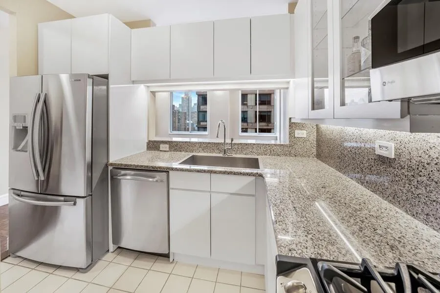 Apartment 15Ε is a spacious, sun-filled one‐bedroom, one-bath corner unit featuring dual south and east exposures. The layout of this E-unit creates a sense of space that feels significantly larger than comparable one-bedroom apartments, thanks to the three large windows in the living room. Additionally, the larger-than-average pass-through kitchen is equipped with updated appliances and offers ample counter and cabinet space. This home also includes a wine cooler and a full-size washer and dryer for added convenience. Enjoy an updated bathroom featuring an integrated heated Toto Washlet. Custom lighting and motorized blackout shades throughout ensure complete privacy.
