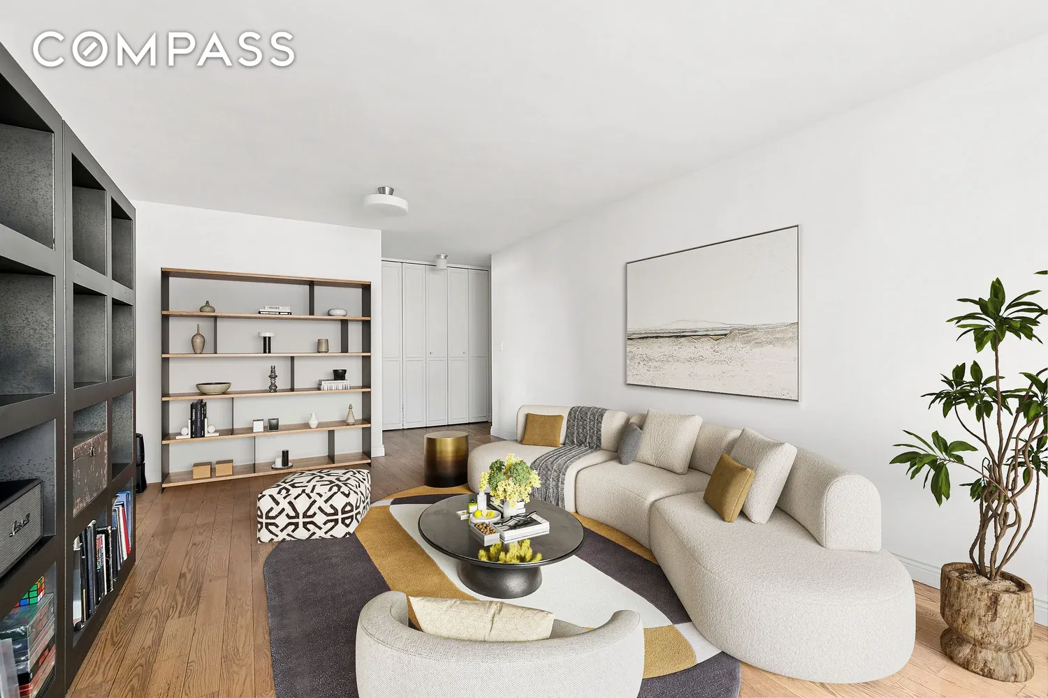 The highly coveted Park Towers is located on a tree-lined block and is a full-service, luxury co-op. Enjoy the 24-hour doorman, a roof deck with spectacular city views, an exercise room, garage, central laundry, a live-in superintendent, storage and a bike room. Pied a terres, co-purchasing, and gifting are all allowed, as are pets! 7 subway lines, as well as several bus options, are all within a few blocks or less. Trader Joes, Westside Market, Whole Foods, endless restaurants, and Stuyvesant Square and Union Square Park are all nearby for your pleasure and convenience. Capital assessment of $50.41/mo through December 2026.