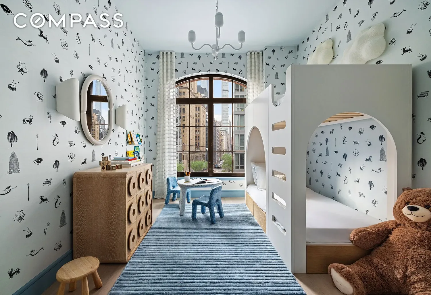 Each amenity space at The Willow has been meticulously designed by Rockwell Group to create an intimate, club-like atmosphere. The light-filled library, featuring a sleek contemporary fireplace, opens directly to the beautifully landscaped Courtyard Garden. The fitness center and adjacent cedar-clad sauna embrace a light aesthetic, offering residents a peaceful space for wellness. The cinema provides cozy seating, while the Glamercy Music Room offers the ideal environment for practicing, playing, and enjoying instruments. On the Rooftop Terrace, residents can enjoy grilling stations, dining, and lounging areas, all while taking in panoramic city views. Additional amenities include the Mermaid Room for socializing, adjacent to the cinema, and a Children’s Playroom. The lobby is attended 24 hours a day by a doorman. The complete offering terms are in an offering plan available from the sponsor, file number C24-0002. Equal Housing Opportunity. Marketed by Compass Development Marketing Group.