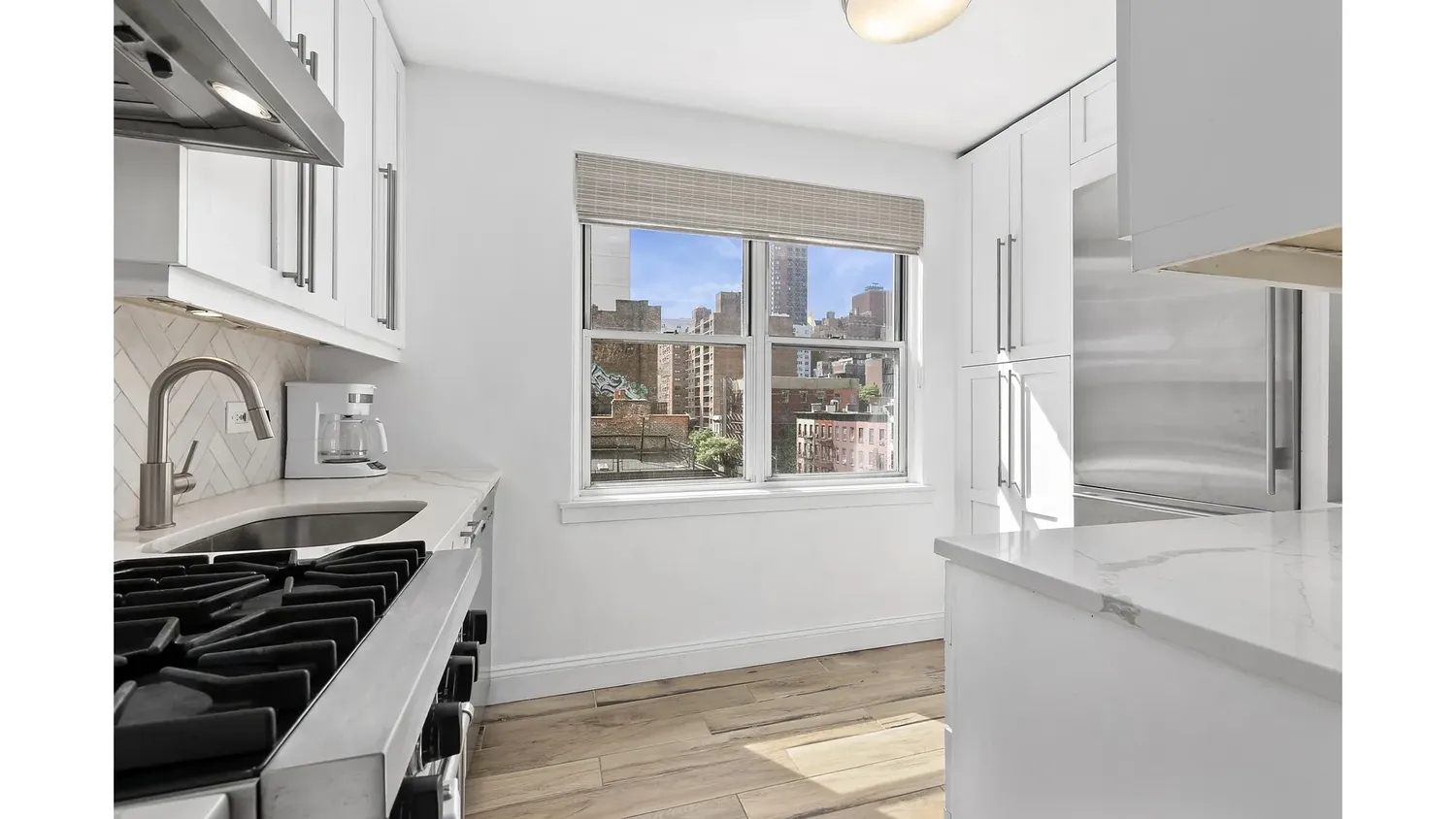 Τhis bright corner Junior 4 enјoys sought-after south and west exposures with open city views overlooking Second Avenue, filling the home with natural light throughout the day. Thoughtfully designed and impeccably maintained, this spacious residence offers nearly 900 square feet of living space and has been converted into a rare 2-bedroom, 1-bath layout with the scale and flow of a true home in the heart of Murray Hill.
