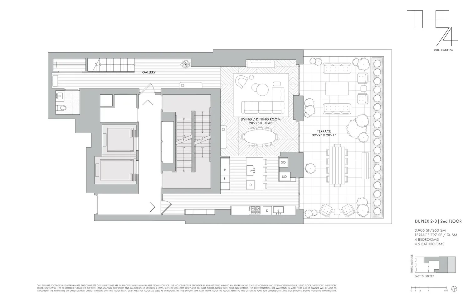 All renderings of views and exposure to light are for illustrative purposes only. Views shown are approximate and depicted from various elevations. No representation is being made with respect to actual, current or future views from any floor or Unit, and/or exposure to light for any particular floor or Unit, or as the same may be affected by any existing construction or demolition by any Sponsor or third party. No representations or warranties are being made except as may be set forth in the applicable Offering Plan for such Unit. Exclusive Marketing & Sales Agent: Douglas Elliman Development Marketing. The complete offering terms are in the Offering Plan for the respective Unit, available from the applicable Sponsor: El Ad East 74 LLC, having an address c/o El Ad US Holding, Inc., 575 Madison Avenue, 22nd Floor, New York, New York 10022. File No. CD23-0034. Equal Housing Opportunity.