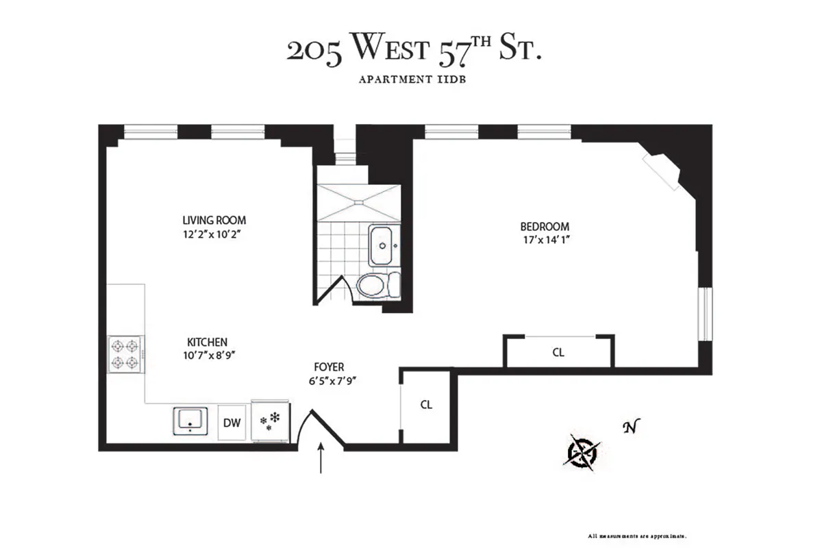 Whether you're seeking a refined full‐time residence or a more private alternative to hotel living, Apartment 11DB offers the perfect balance of character and comfort. Perched on the top floor of the iconic Osborne, this distinctive one-bedroom home is filled with classic prewar details—soaring ceilings, original hardwood floors, a wood-burning fireplace, and six oversized windows that bathe the space in natural light. Soundproof walls ensure serenity, while the thoughtfully updated chef’s kitchen with open layout makes entertaining effortless. The bathroom is tastefully appointed with timeless beveled subway tile.