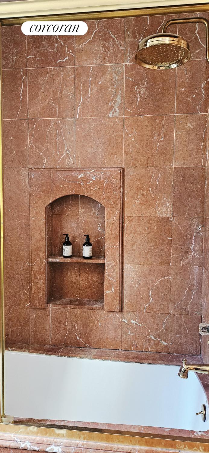 The lobby serves as a testament to late-19th-century extravagance. The floors are a mix of small mosaic tiles and slabs of varicolored Italian marble. Complementary marble was used for the wainscoting and carved marble recesses with benches. Dancing nudes and intricately decorated archways with , multi-colored 19th century carved wood and ceramic tile take the eye to a ceiling done in rich hues of red, blue and gold leaf.
