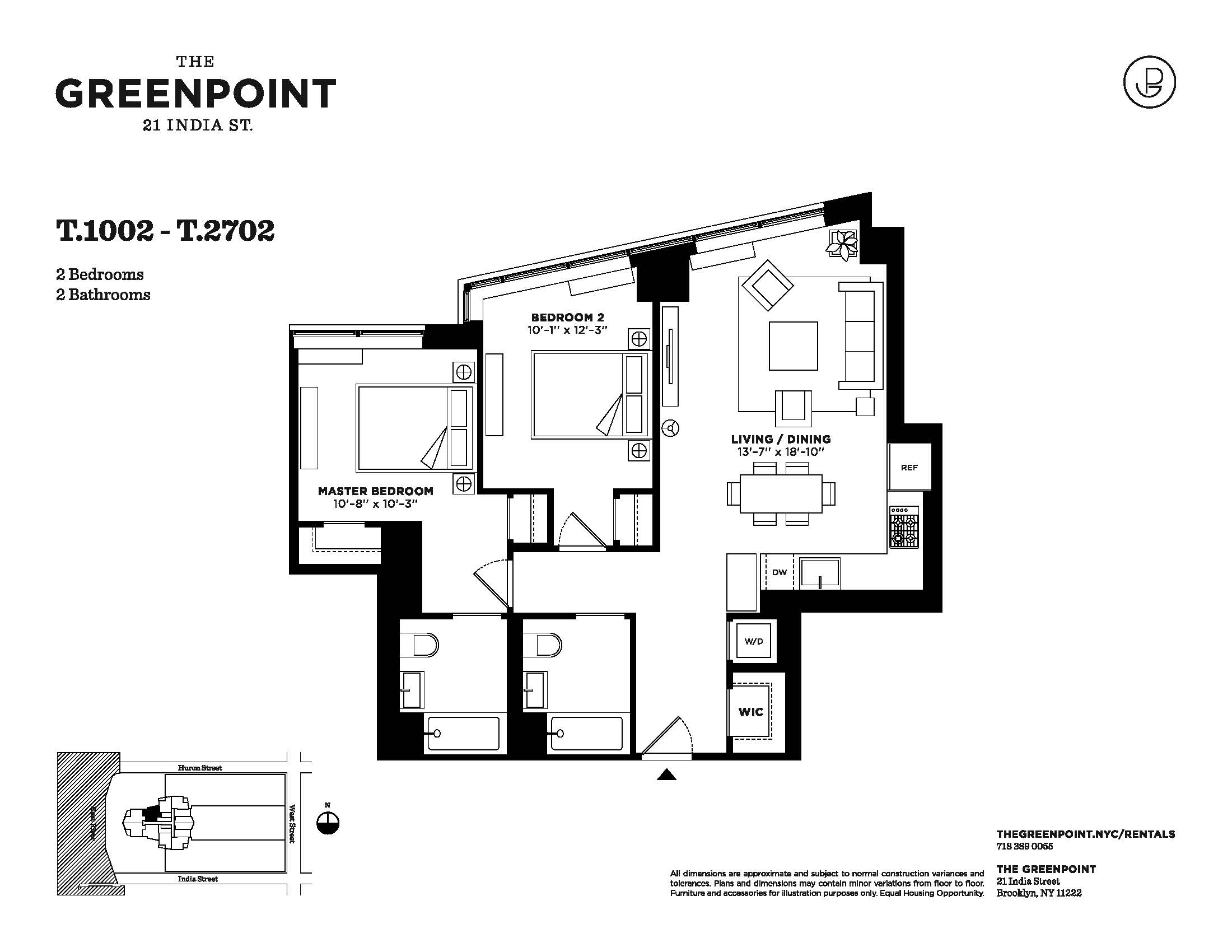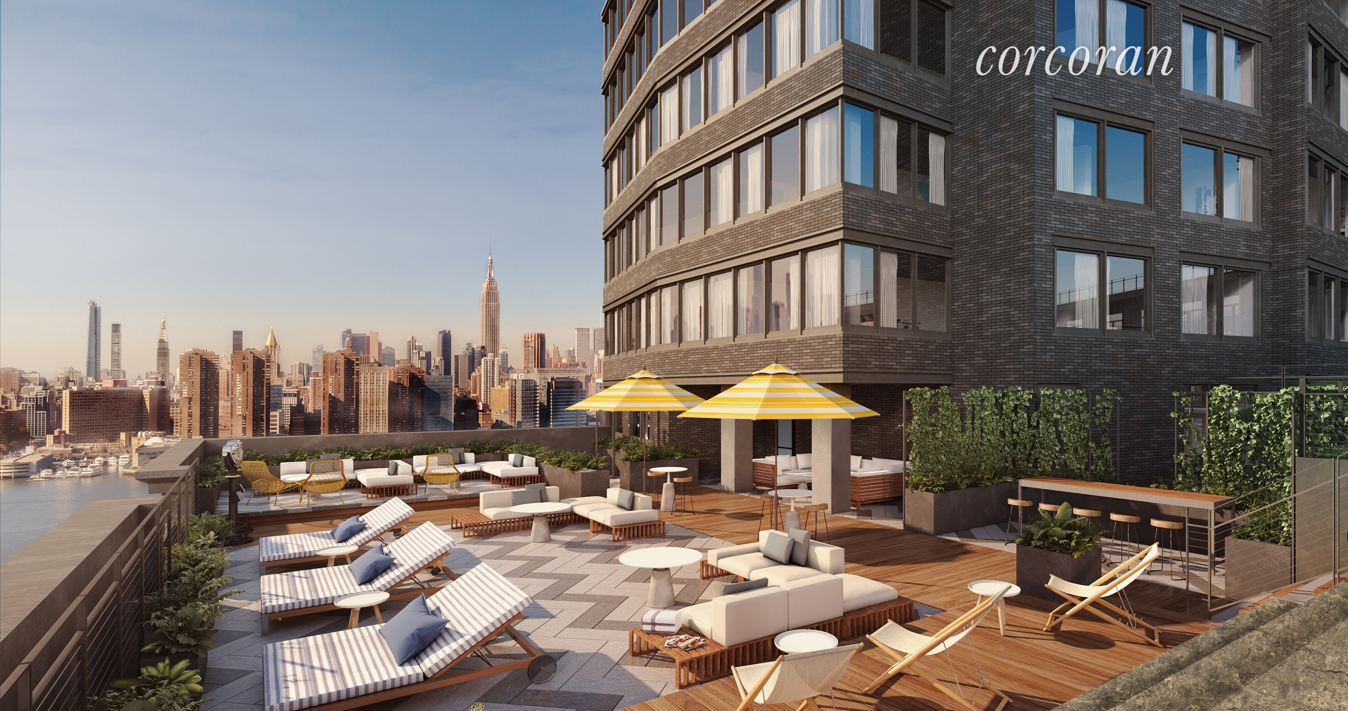 Front door ferry stop. Offering 3 months free on a 15-month lease and 1-month OP.This north facing 2BR residence features ample light with oversized windows allowing for openness unmatched throughout its incredible Brooklyn neighborhood. The wide plank walnut floors and over 9-foot ceilings, highlight a natural palate. Your seamless kitchen is outfitted with classic white Caesarstone countertops and white herringbone tiled backsplash alongside a Maytag appliance package including gas cook-top, range hood, dishwasher, refrigerator and a Bosch washer/dryer. The master bathroom offers a walnut vanity with custom recessed mirrored medicine cabinet, floor-to-ceiling herringbone tile with black accent trim and matte black fixtures. The Greenpoint is a collection of brand new studio to three bedroom luxury rental residences located on Brooklyn's East River waterfront. These thoughtfully designed residences offer a contemporary home with airy living spaces and excellent natural light. An amenity-rich lifestyle awaits with 30,000 square feet of space to live, work and play while the NYC Ferry is just outside your door offering convenient and direct access to Midtown Manhattan, Wall Street, Williamsburg, Long Island City and more. Strolling along the waterside boardwalks at twilight, you'll feel all that makes Greenpoint a magical home.**Pricing reflects monthly payable legal rent net of one-time temporary concession.