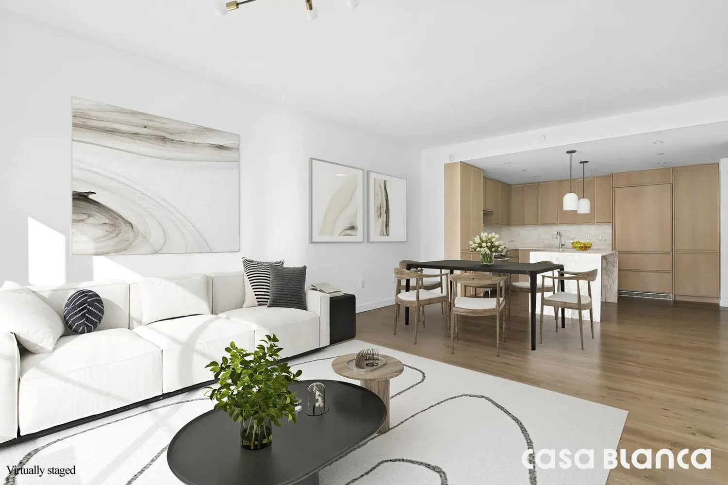 The building elevates everyday living with an entire floor of thoughtfully curated club-style amenities, including a fully equipped fitness center with dedicated cardio and weight training areas, a private yoga studio, and a stylish residents’ lounge featuring a pool table and media room. Additional conveniences include a playroom and secure bike storage—perfectly suited for modern Brooklyn lifestyles.