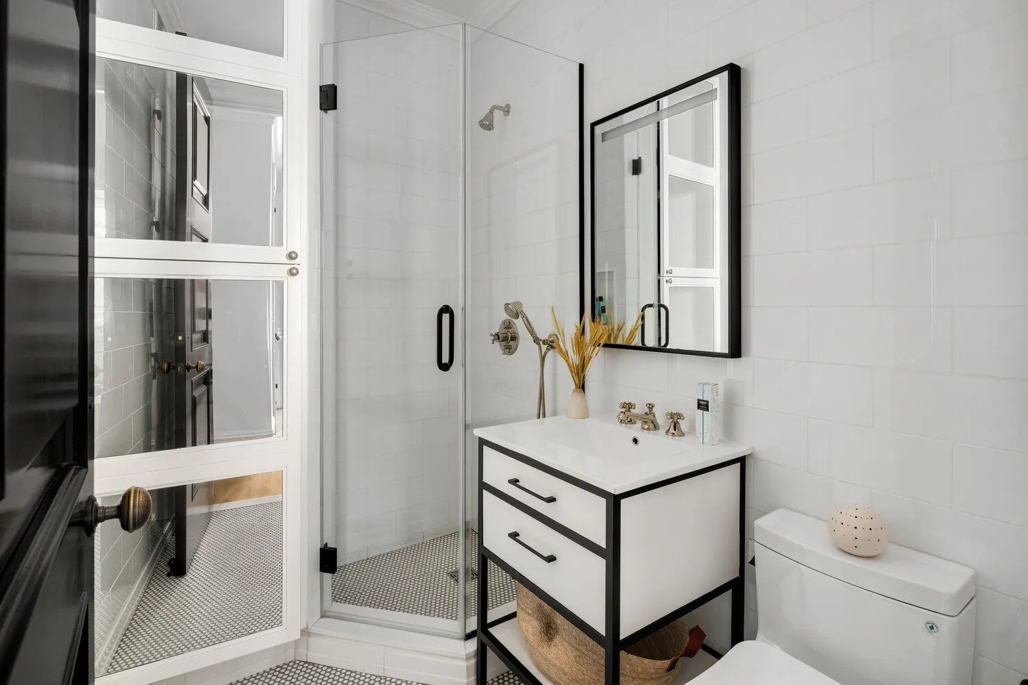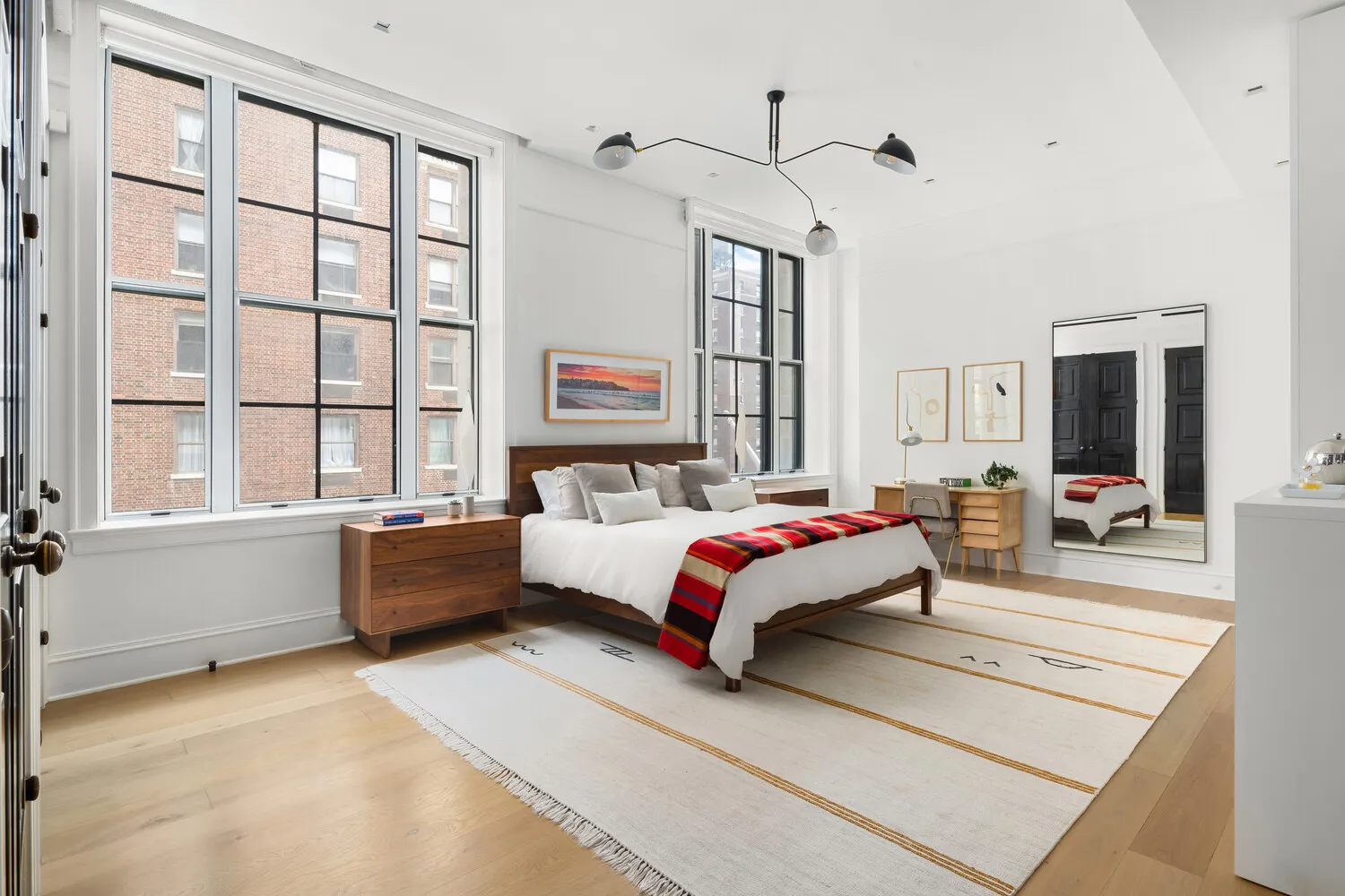 Spanning approximately 2,200 square feet, this exceptional home is defined by soaring 11'5" ceilings, brand-new 7-inch white oak plank floors, and oversized north- and west-facing windows that bathe the interiors in natural light throughout the day.