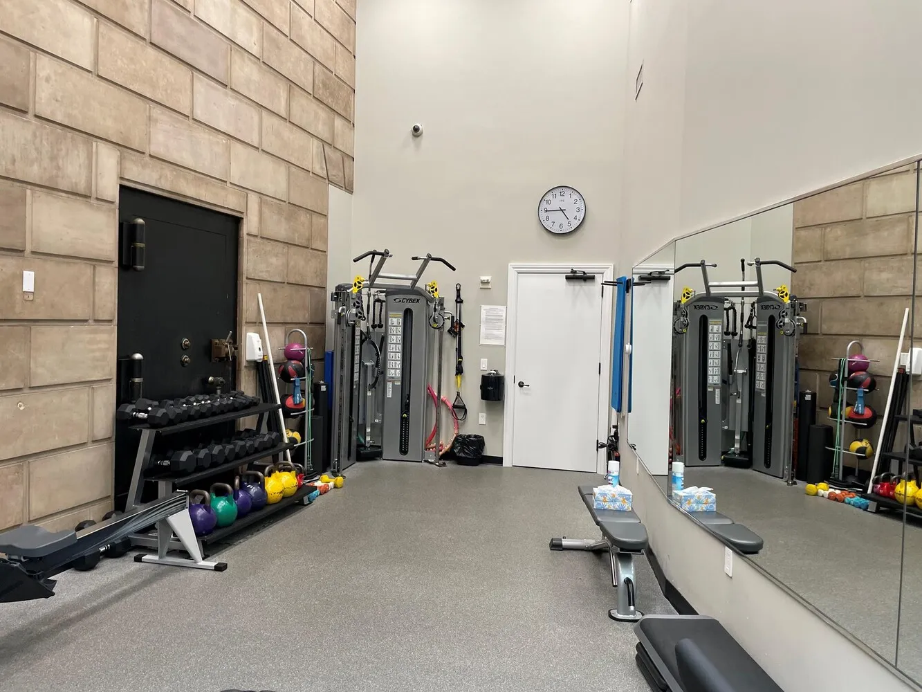 Fully equipped fitness center with Peloton bikes and Peloton treadmill