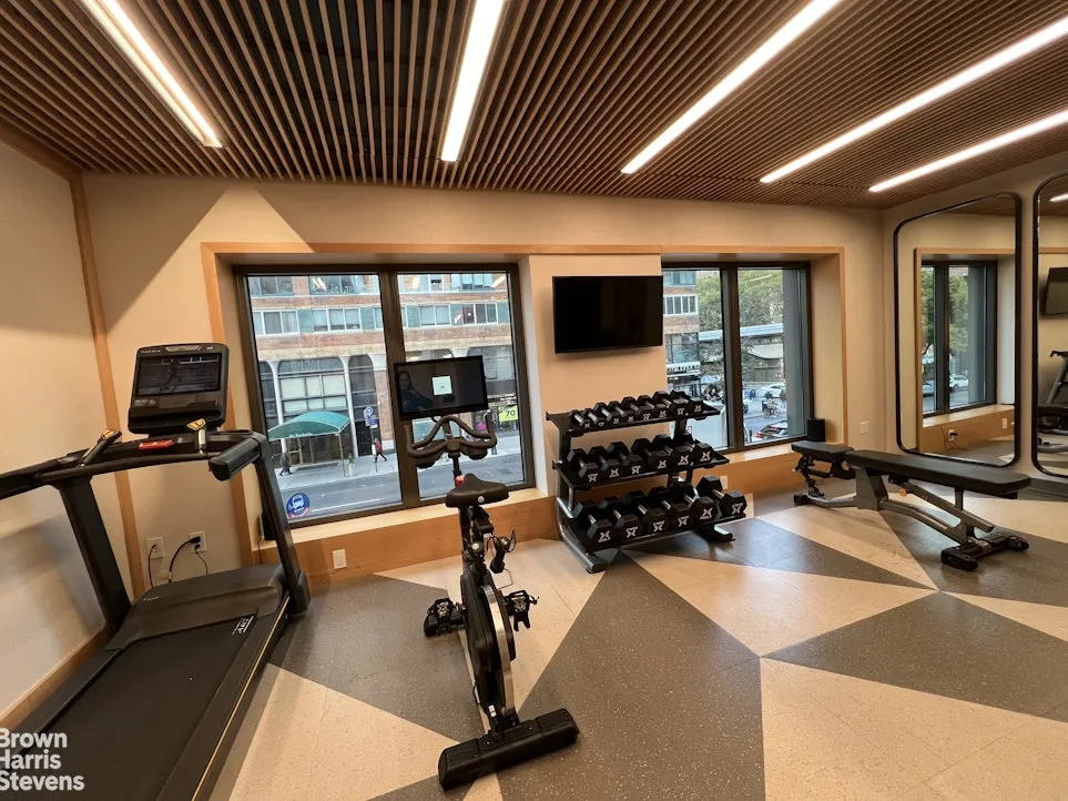 The Parker West condo has a 360-degree boutique roof deck upstairs with fabulous Hudson River and city views plus seating and a gas grill. There is a second outdoor green space downstairs as well. In addition, there is a boutique light and airy fitness room on premises.