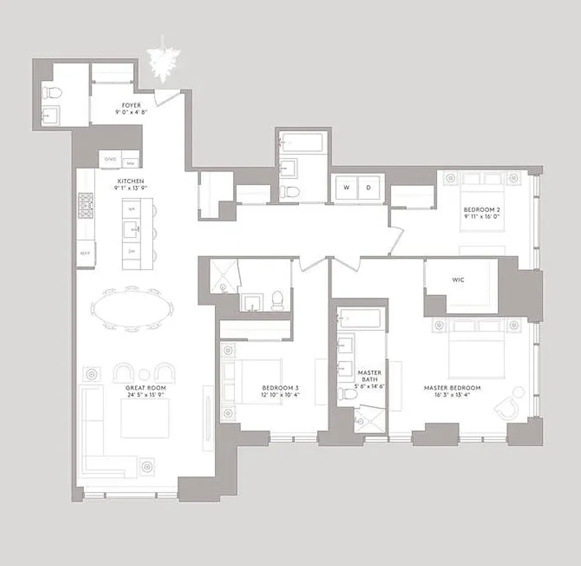 The exclusive Gramercy Club, curated by La Palestra, offers unparalleled amenities, including a 75-foot lap pool, a state-of-the-art fitness center, sauna and steam rooms, a yoga studio, and a unique meditation studio by MNDFL. Additional features include a children's playroom, a resident lounge, a screening room, a golf simulator, and a beautifully curated wine cellar.