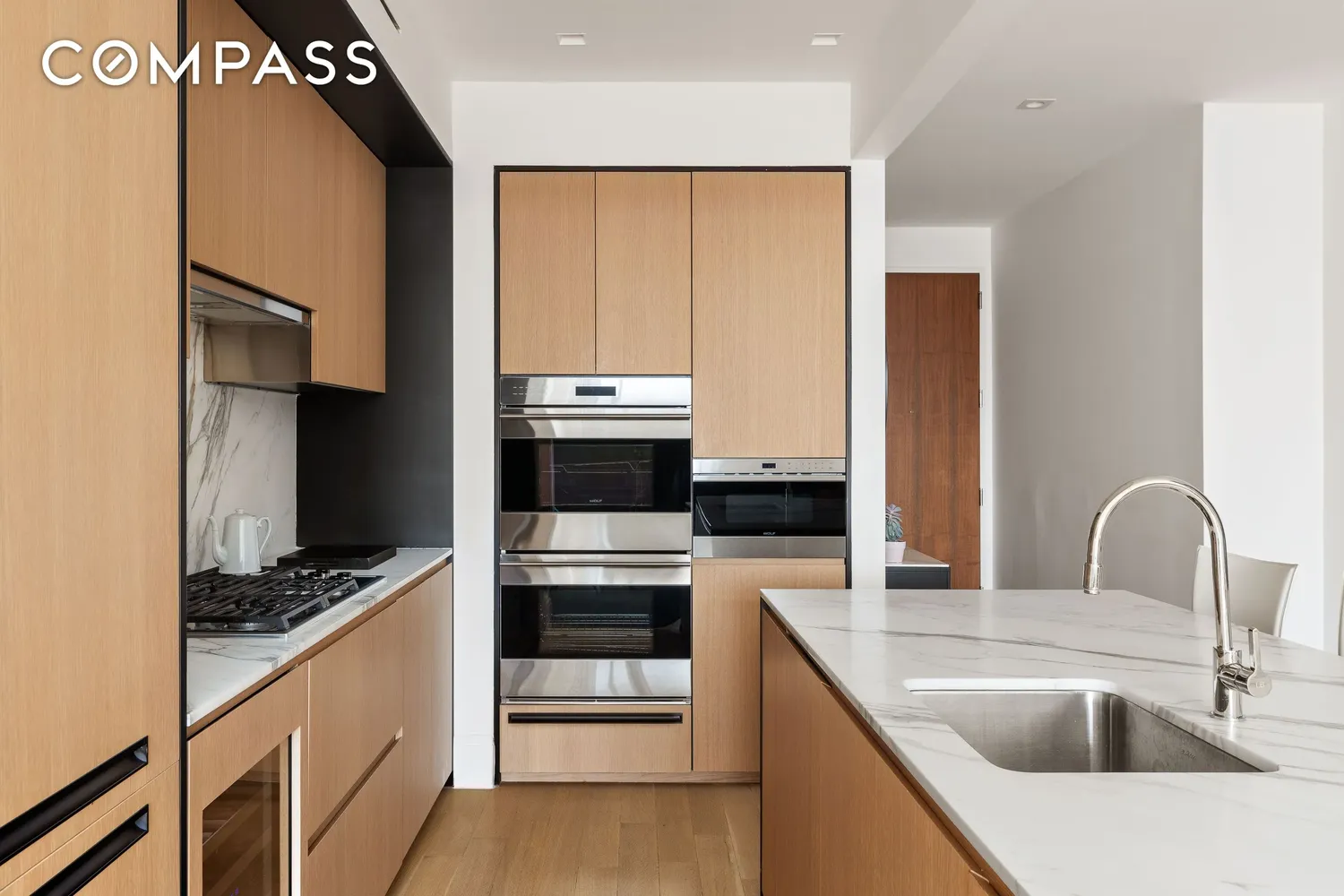 Upon entry, a gracious foyer and powder room welcome you to this sun-drenched, south-facing residence. The spacious living room provides a perfect setting for relaxation, entertaining, or taking in breathtaking cityscapes.