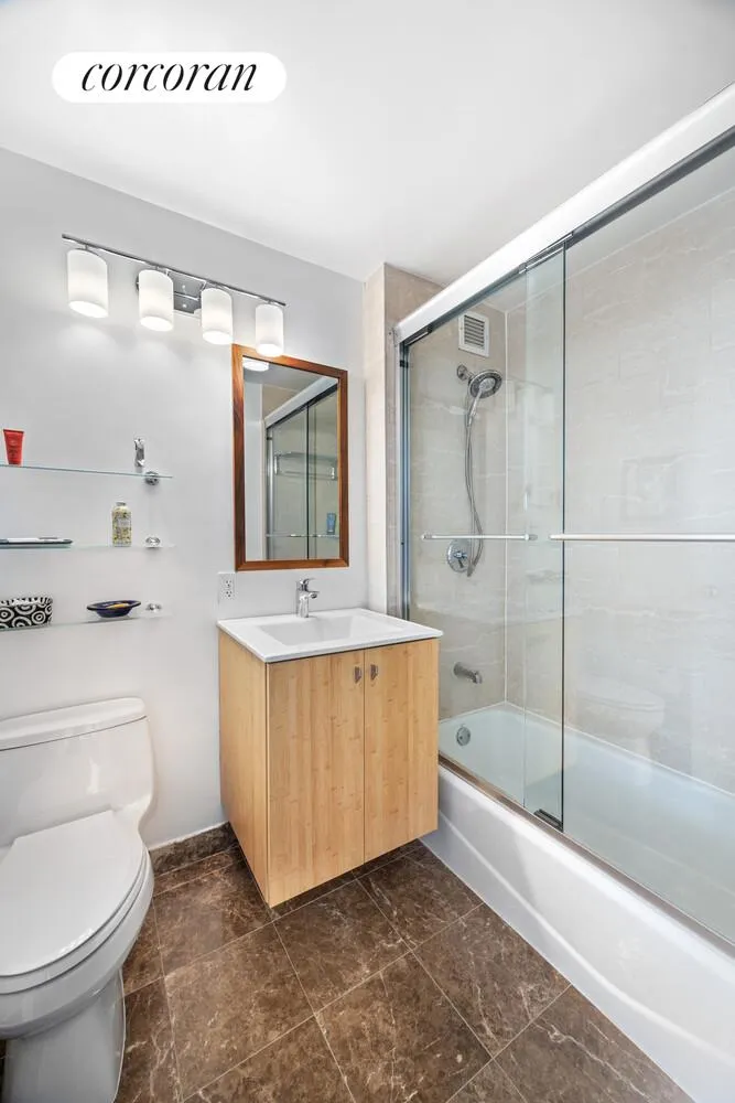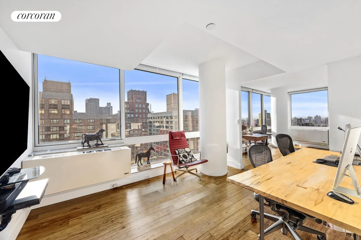 Currently configured to live like an oversized one-bedroom plus a large home office/den, the layout creates an expansive great-room vibe that's ideal for entertaining and working from home. Prefer a traditional setup? The apartment can be easily converted back to a true two-bedroom layout.