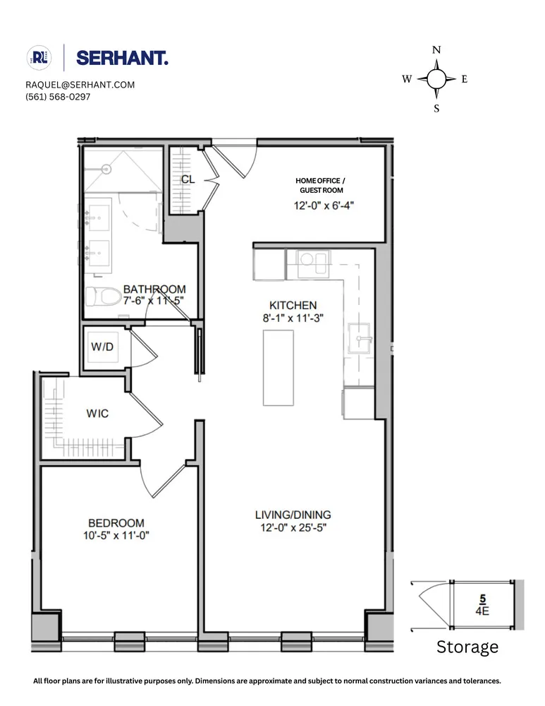 Unit 4E opens into a proper entry foyer with a generous built-out coat closet. Just beyond it sits a dedicated room perfectly suited as a home office, nursery, or guest room, a versatile space that is genuinely rare to find in Williamsburg.