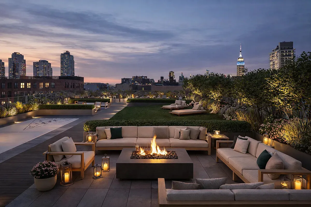 And then there is the building. NX is one of the only boutique condominiums in North Williamsburg with a full service doorman and amenities. Just 31 residences, and a rooftop that has to be seen to be believed. Lush landscaping, generous lounge seating, a lawn, and unobstructed Manhattan skyline views that stretch from the Empire State Building across the entire cityscape. Add a smart fitness center, a package room, and an on-site parking garage. At this size, with this level of service, in this location, there is genuinely nothing else like it. Do not miss this one.