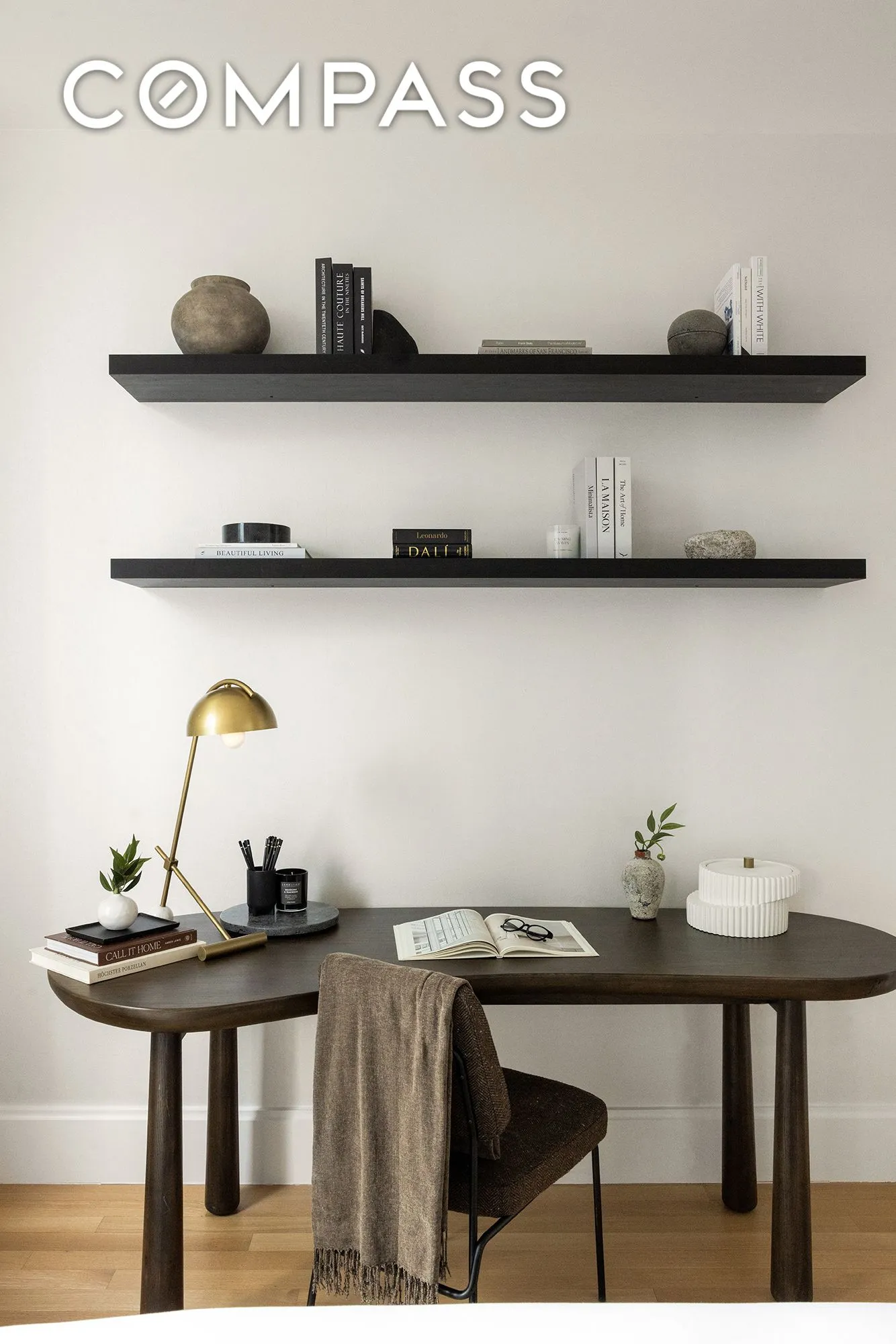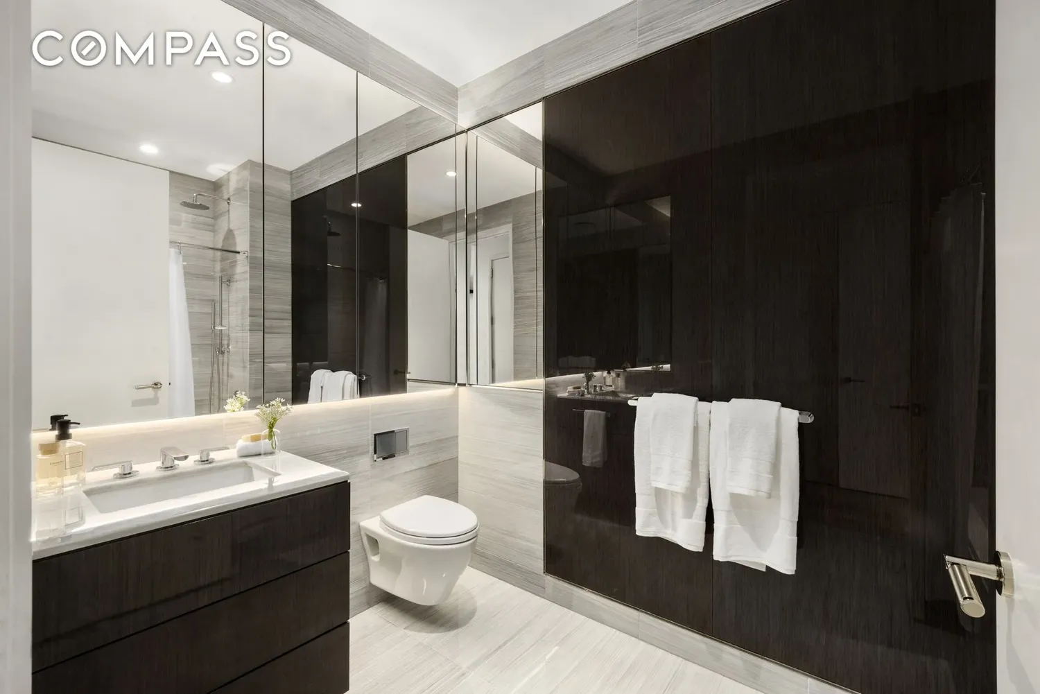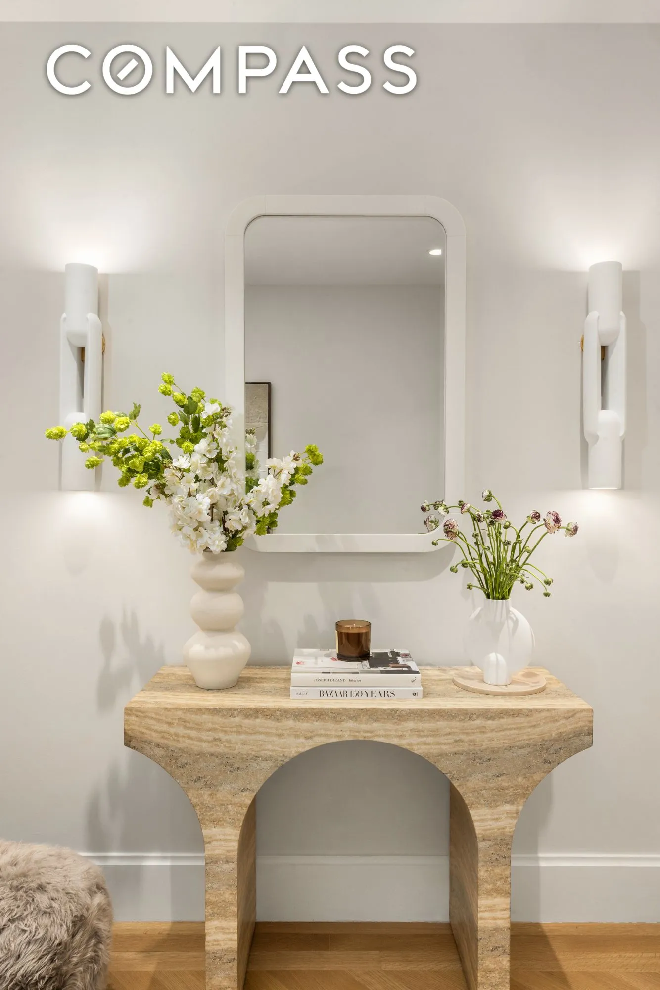 The second bedroom offers generous proportions, excellent storage, and its own beautifully finished bathroom. The home is further complemented by a powder room, washer and dryer, and thoughtfully designed wall spaces ideal for showcasing a distinguished art collection.