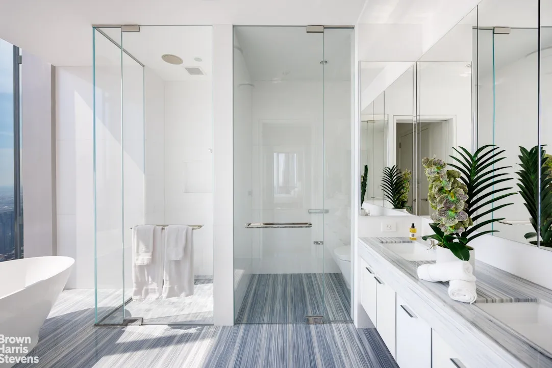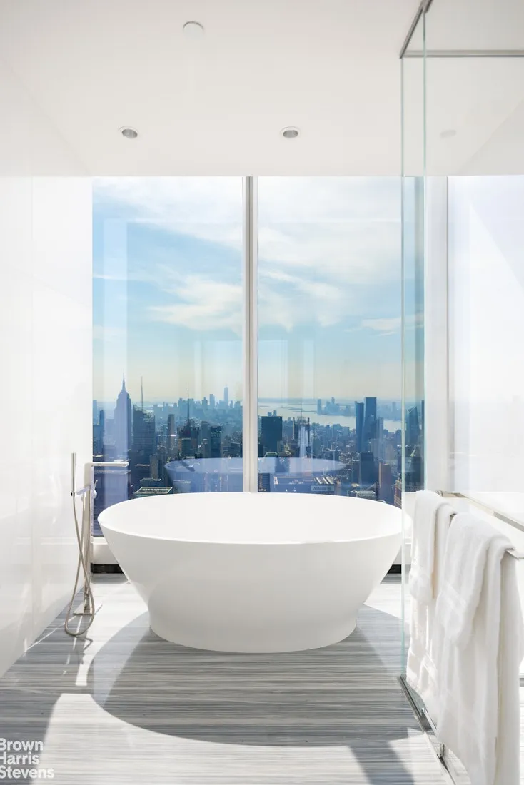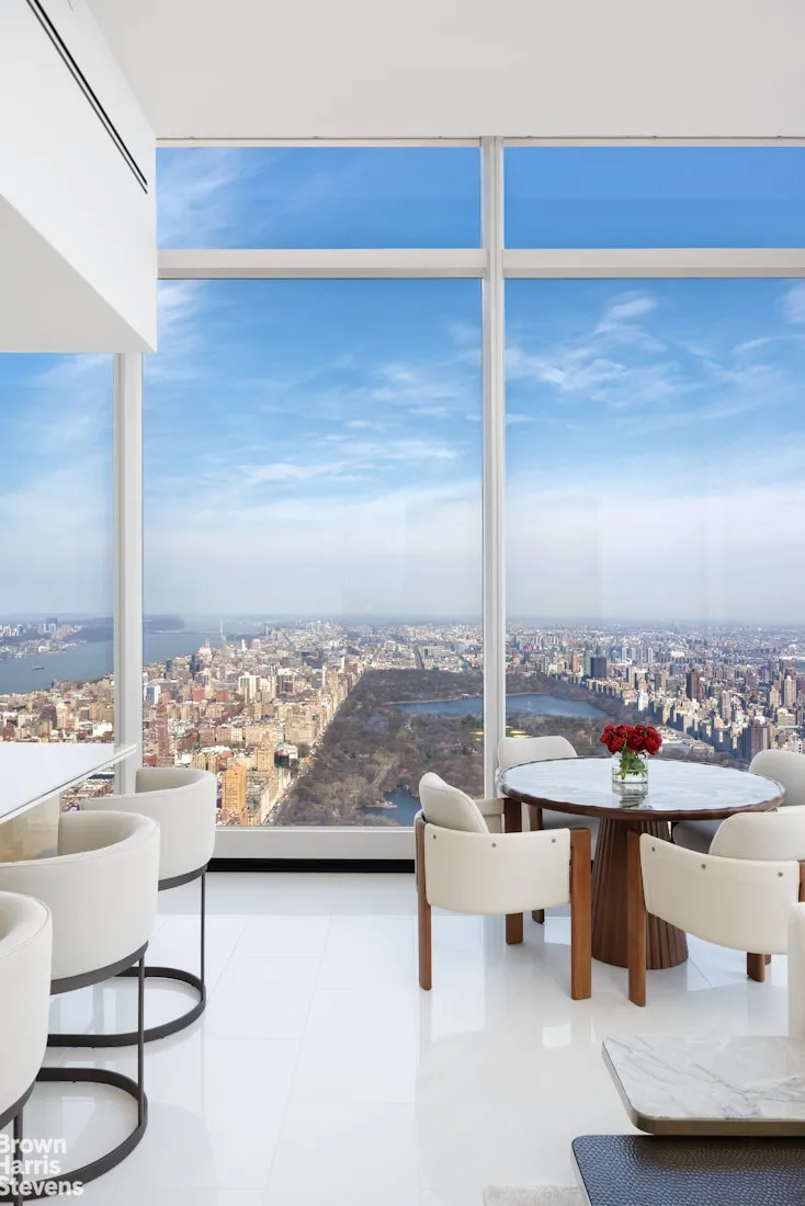 Welcome to Apartment 97E at Central Park Tower, a truly exquisite 4-bedroom, 4.5 bathroom, over 4250 square foot home, with 3 corner views and magnificent 13'6 ceiling heights, the highest in the building. This gorgeous residence is the epitome of ultra luxury, featuring floor-to-ceiling, sound-insulated glass walls that fill each space with natural light while showcasing expansive views in every direction.