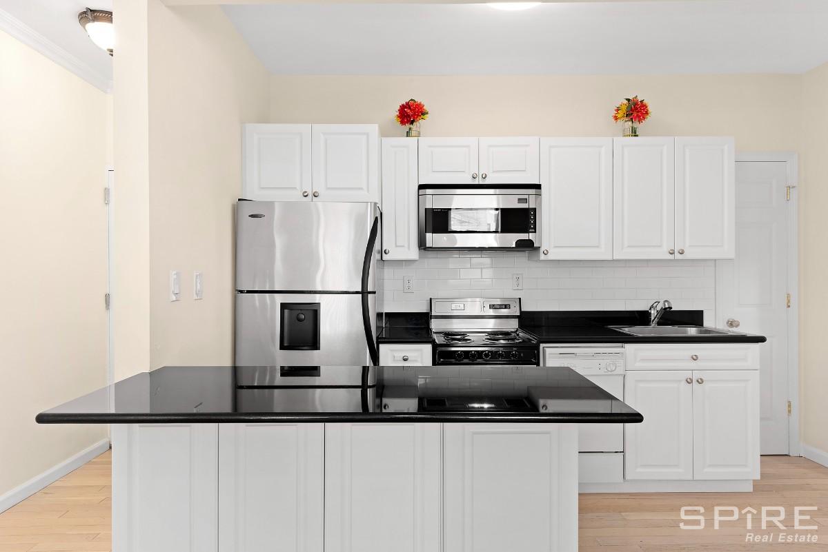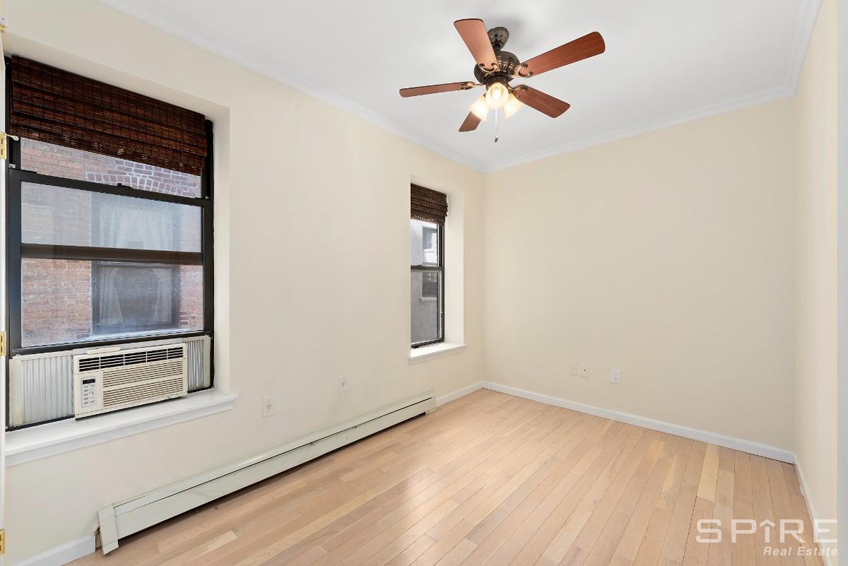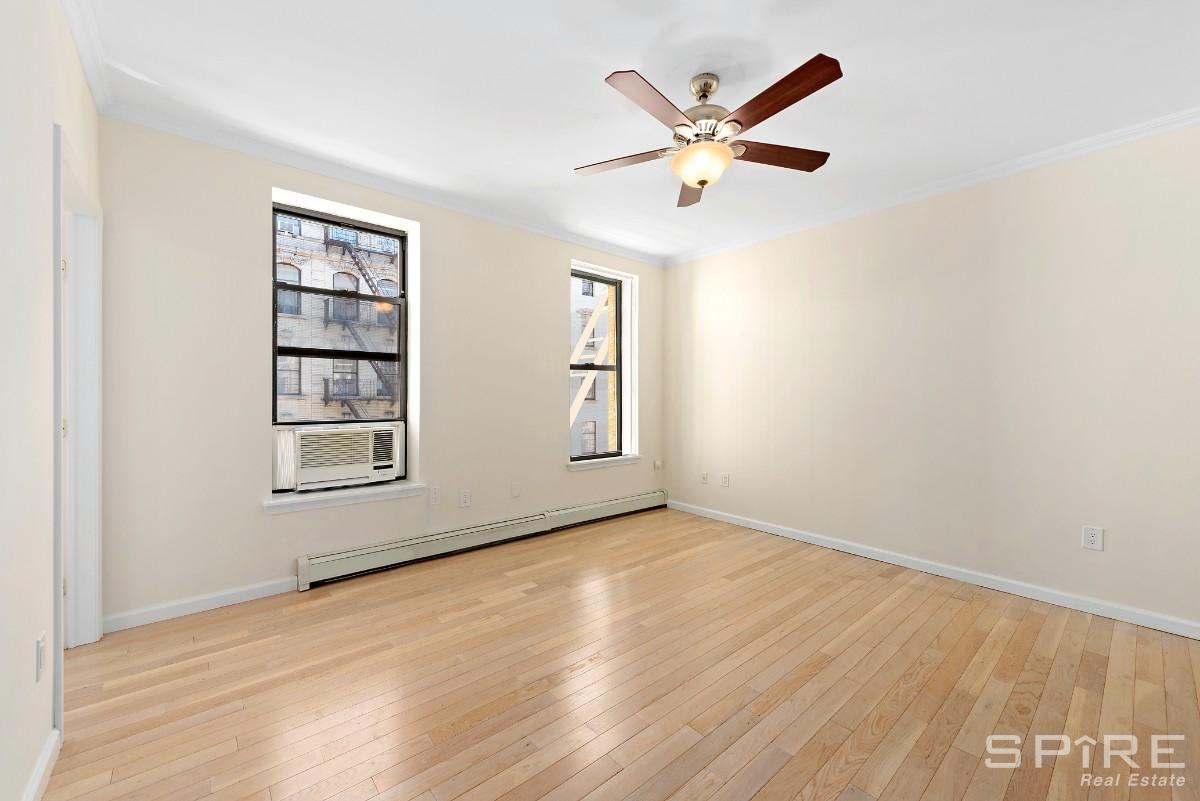 GREAT LOCATION!!! Enjoy a sunny two-bedroom and two bathrooms in South Harlem. Unit 4D offers north and south exposure, oversized windows with plenty of natural light, and warm oak floors. An open kitchen with granite countertops and a large island with bar-stool seating for comfortable entertaining. Stainless steel appliances, dishwasher, microwave, and a large pantry. The rooms have remote-controlled air conditioners, custom shades, and ceiling light fan fixtures, keeping you fresh in the warm months and low utility costs. The north bedroom has an oversized window that overlooks the Electric Ladybug Garden, quite pretty when in bloom.