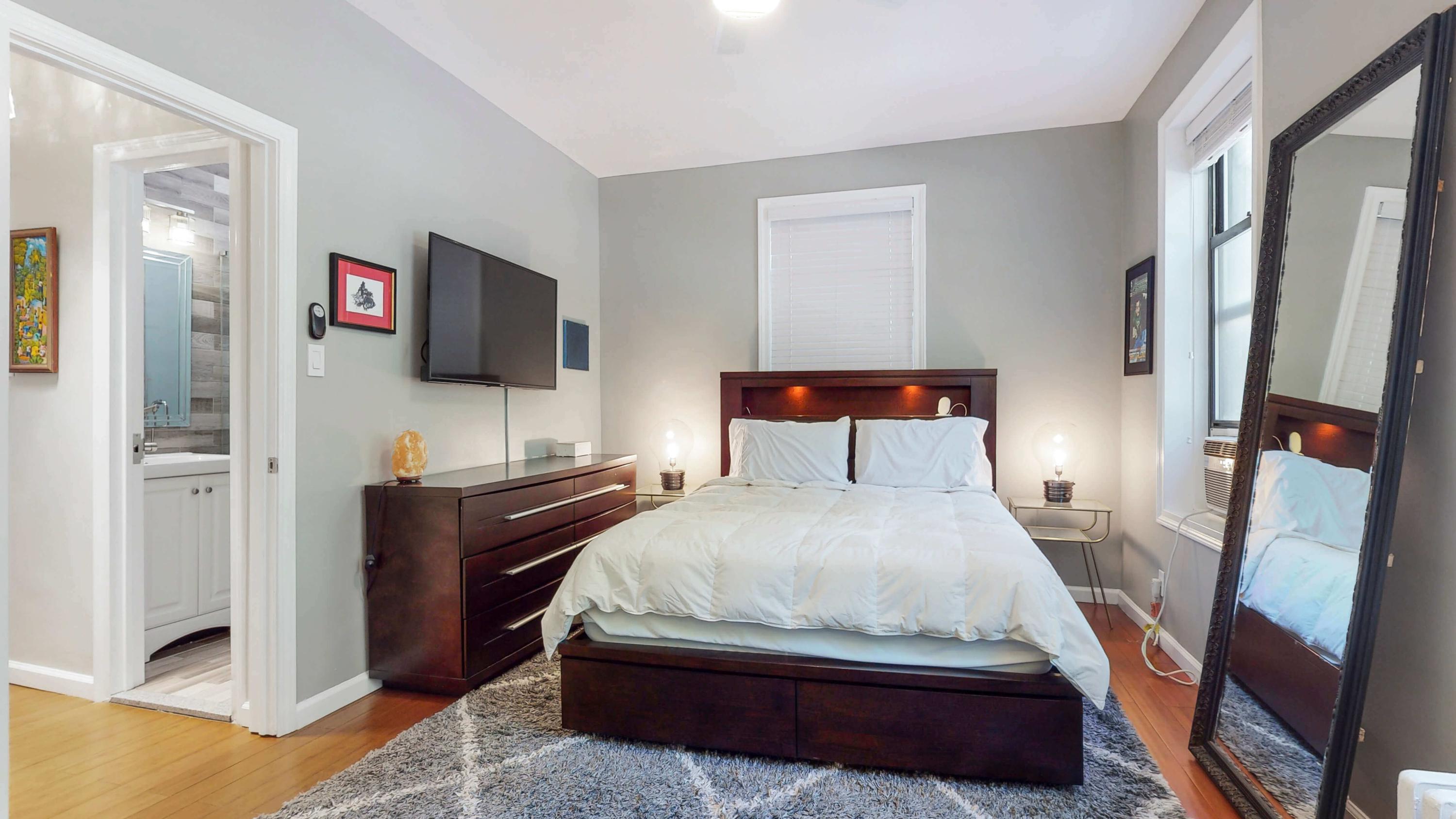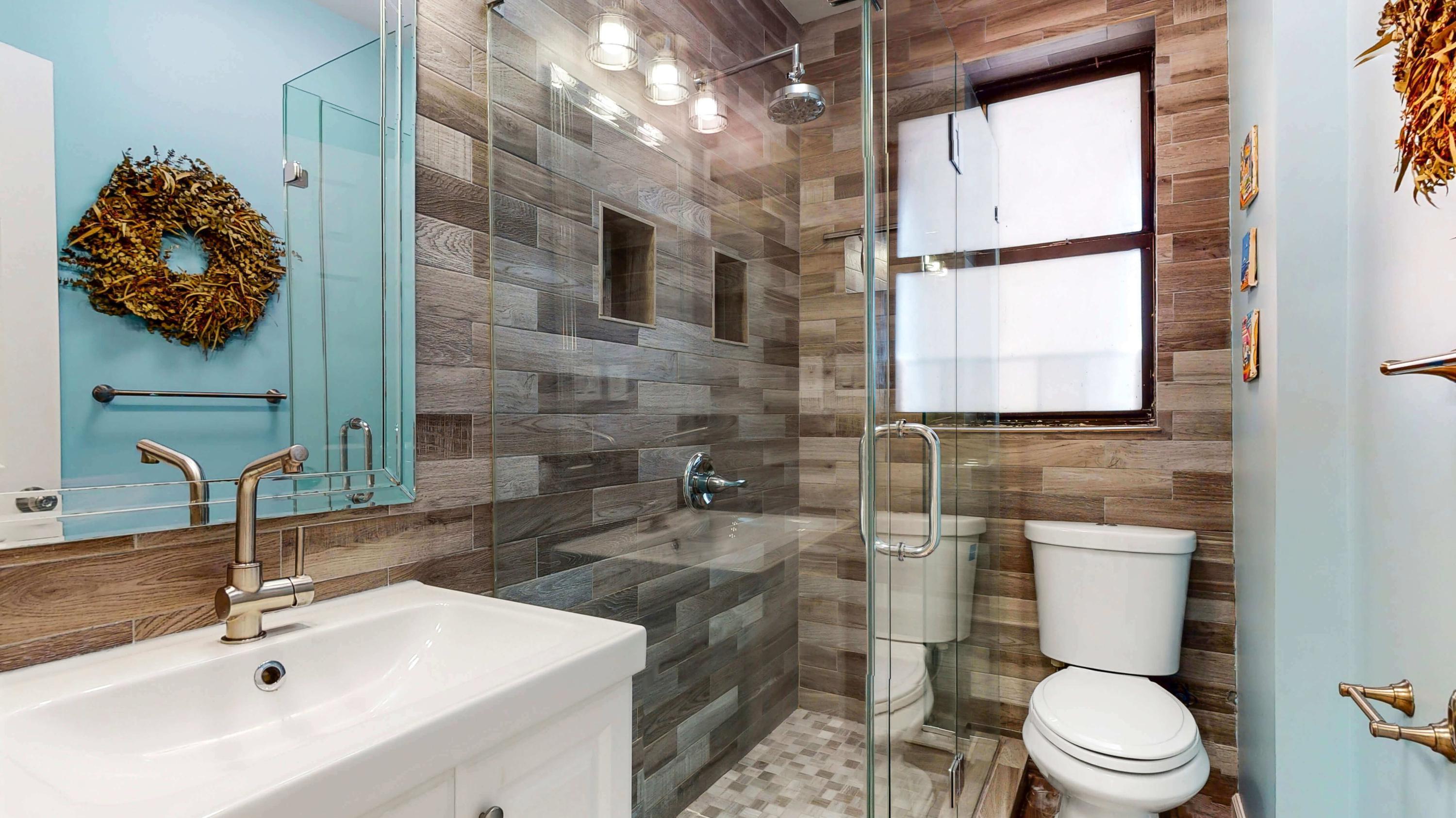 The bathroom will impress with its oversized shower encased in gleaming glass walls, its rain showerhead, and stylish wood-look tile. The massive bedroom will accommodate a king size bed and is flooded with daylight through three large windows. Bedroom includes a walk-in closet, and there is additional storage in the entryway closet.