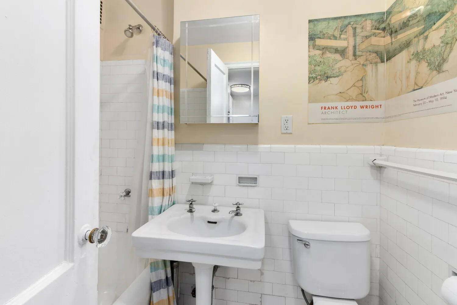 Spacious studio with 3 large closets in a full‐service building. This quiet apartment has a generous foyer leading to an open kitchen with white cabinets, quartz countertops, and a breakfast bar. One of the best features of this gracious studio are the three oversized, very deep closets. The main room is approximately 18'11', large enough to easily accommodate a sleeping area with a queen-sized bed, desk/office area, and living space with a couch, TV, and a dresser. The bathroom with a deep soaking tub, white tiles, built-in toiletry storage, and a pedestal sink is in excellent condition. High-beamed ceilings, hardwood floors, and pre-war details further enhance the space. The apartment faces the inner courtyard, making it a quiet oasis.