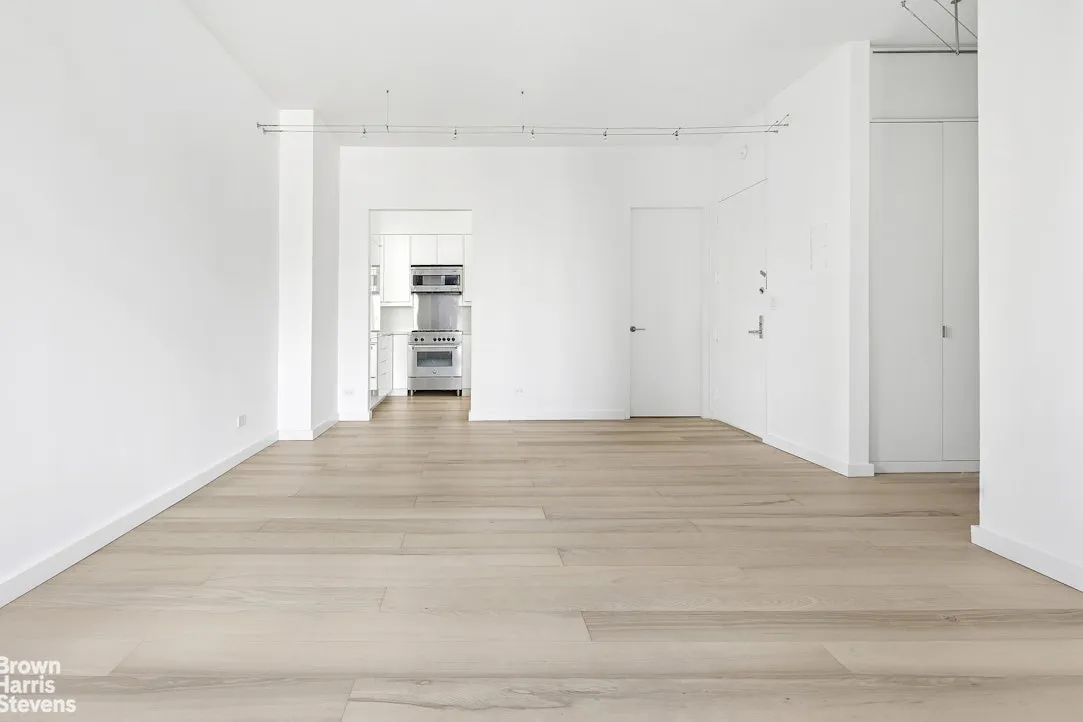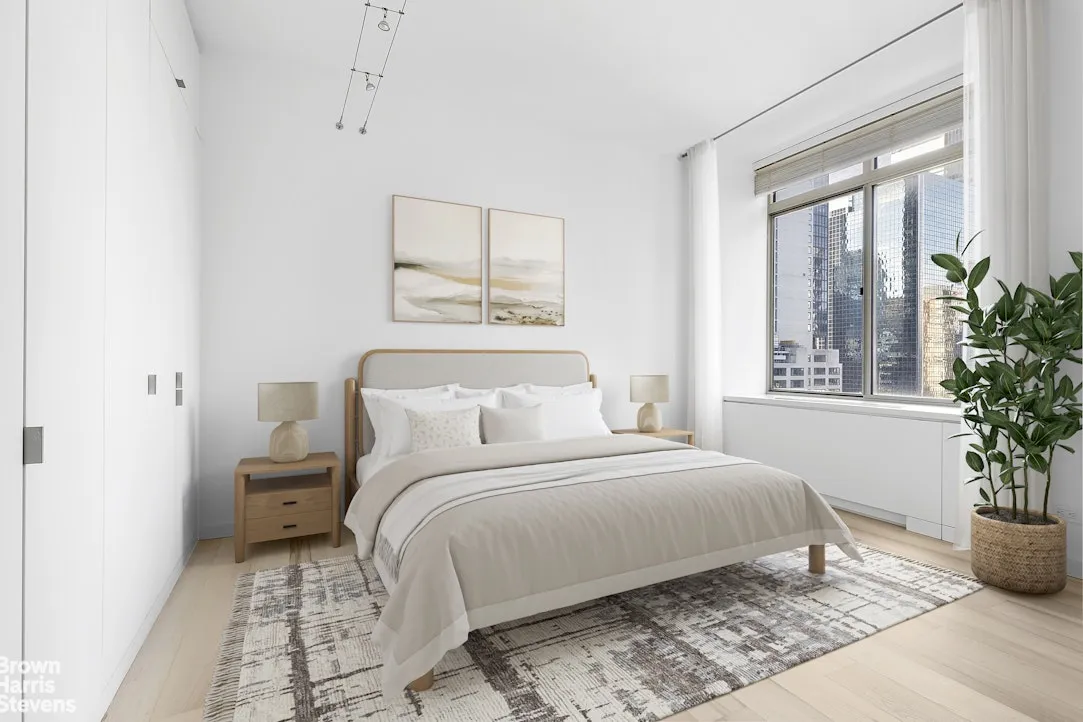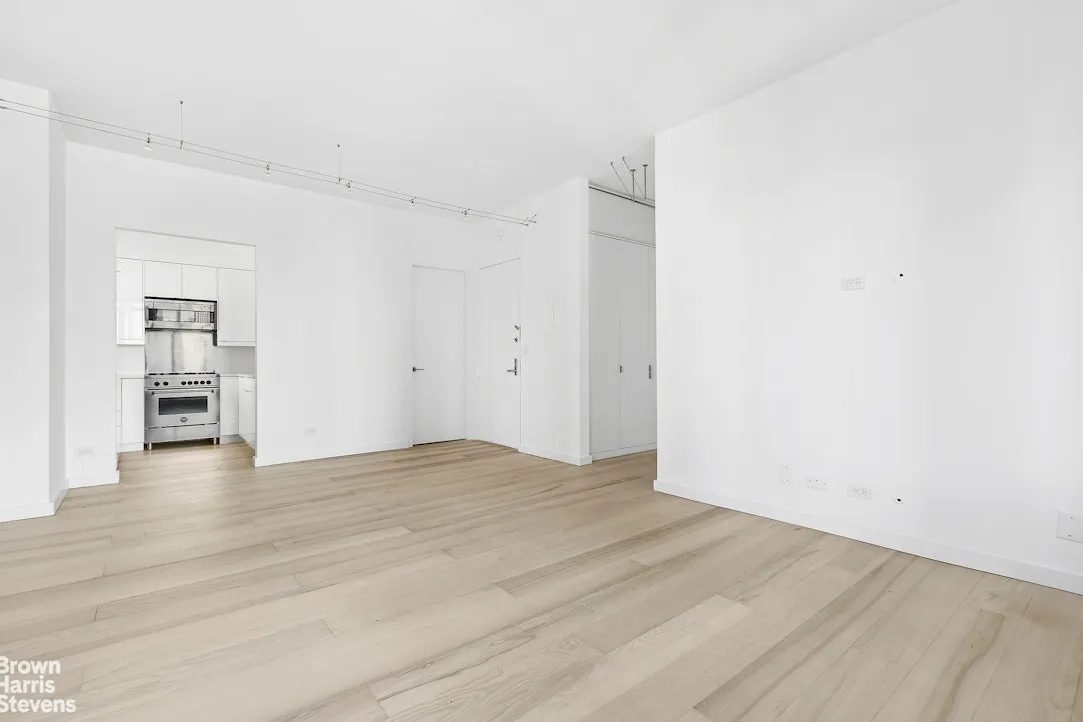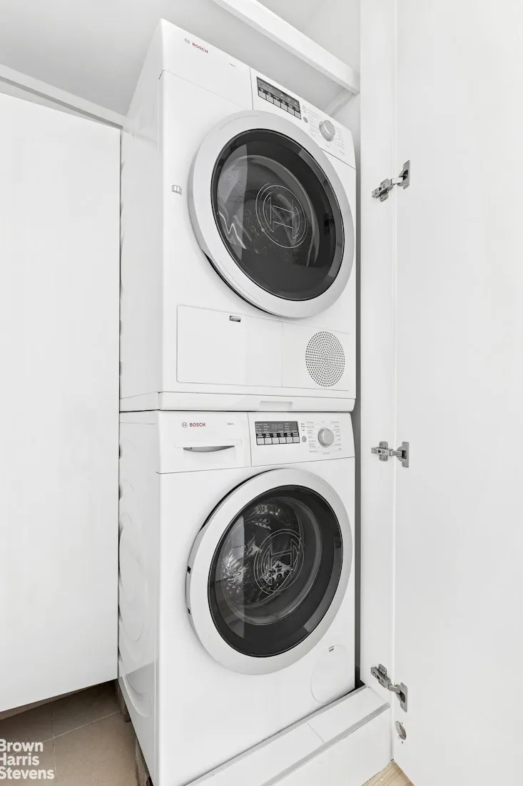 This pristinelу renovated, spacious two-bedroom residence offers sweeping northeast views of the Manhattan skyline through oversized windows. The expansive living area easily accommodates a full dining table, creating an ideal setting for both everyday living and entertaining.