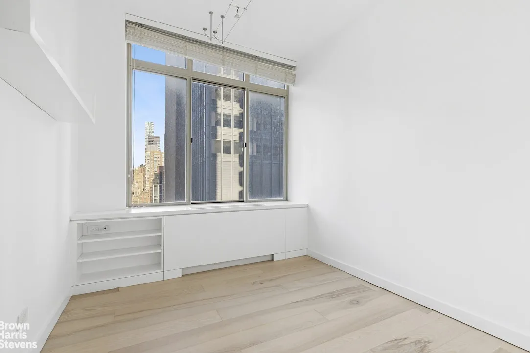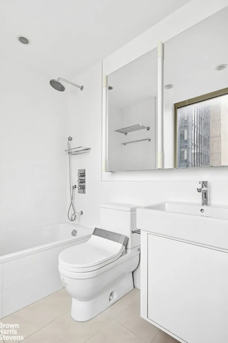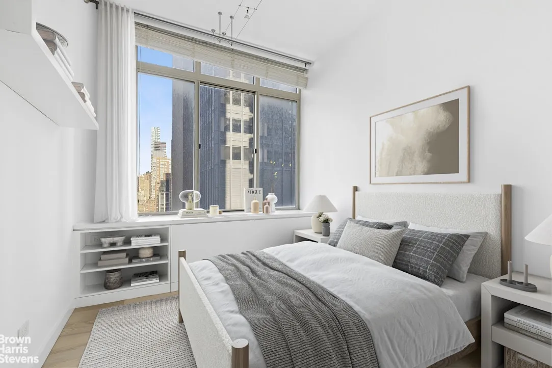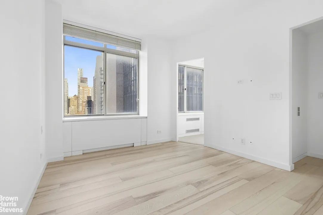 This pristinelу renovated, spacious two-bedroom residence offers sweeping northeast views of the Manhattan skyline through oversized windows. The expansive living area easily accommodates a full dining table, creating an ideal setting for both everyday living and entertaining.