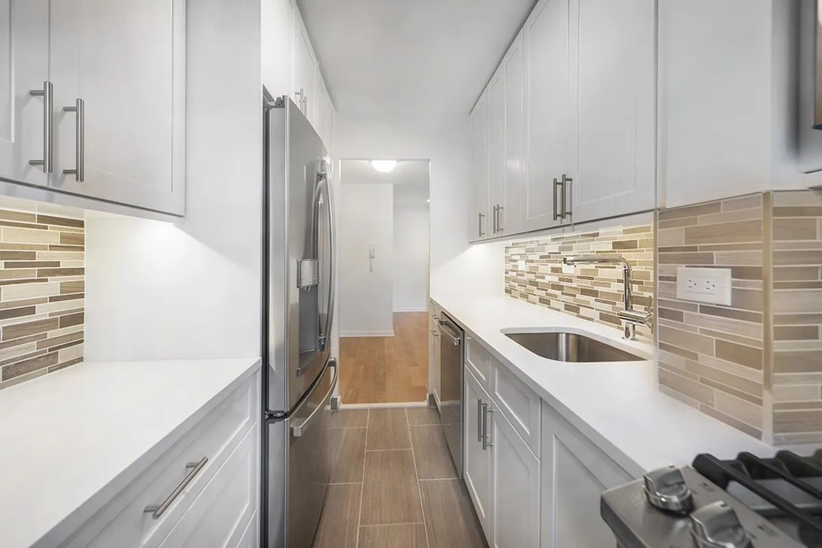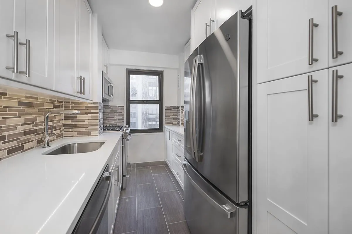 This brand-new renovated sponsor two bedroom, two bathroom apartment with both southern and western exposures is now available. The generous layout features a modern kitchen with bright white cabinets, stainless steel appliances, Italian back-splash tiles and brown ceramic floor tiles. The living room has a separate dining area with access to the guest bath and the large master bedroom leads to a master bath with a walk in shower.