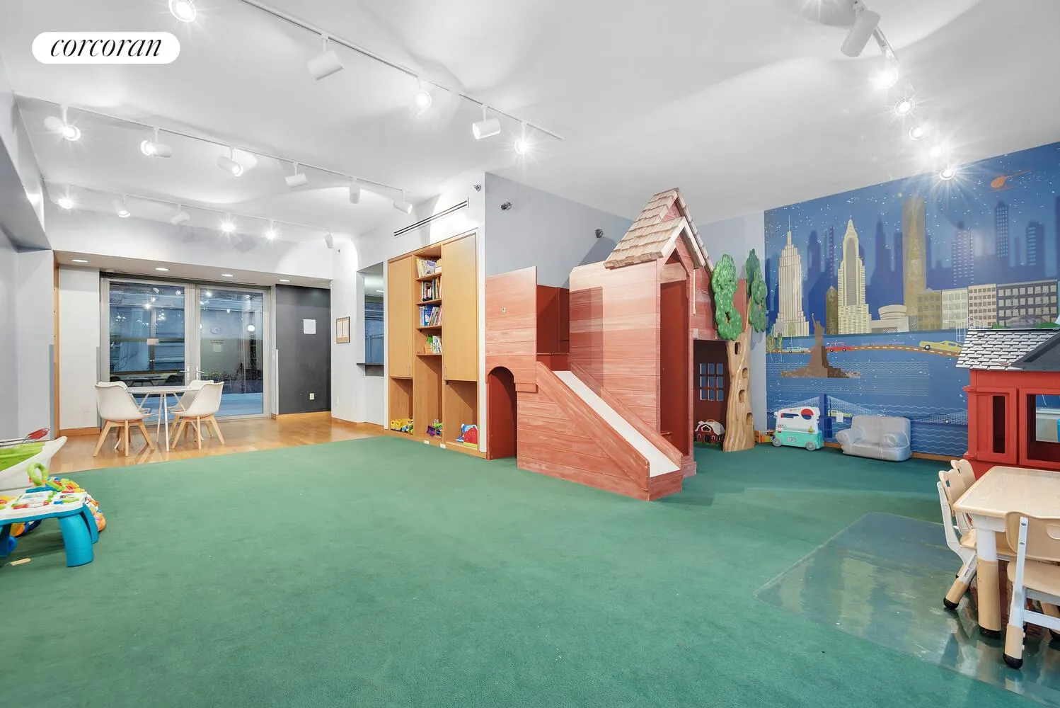 24-hour doorman and concierge, and outstanding building amenities include a large gym, outdoor basketball court, children's playroom, library and cold storage