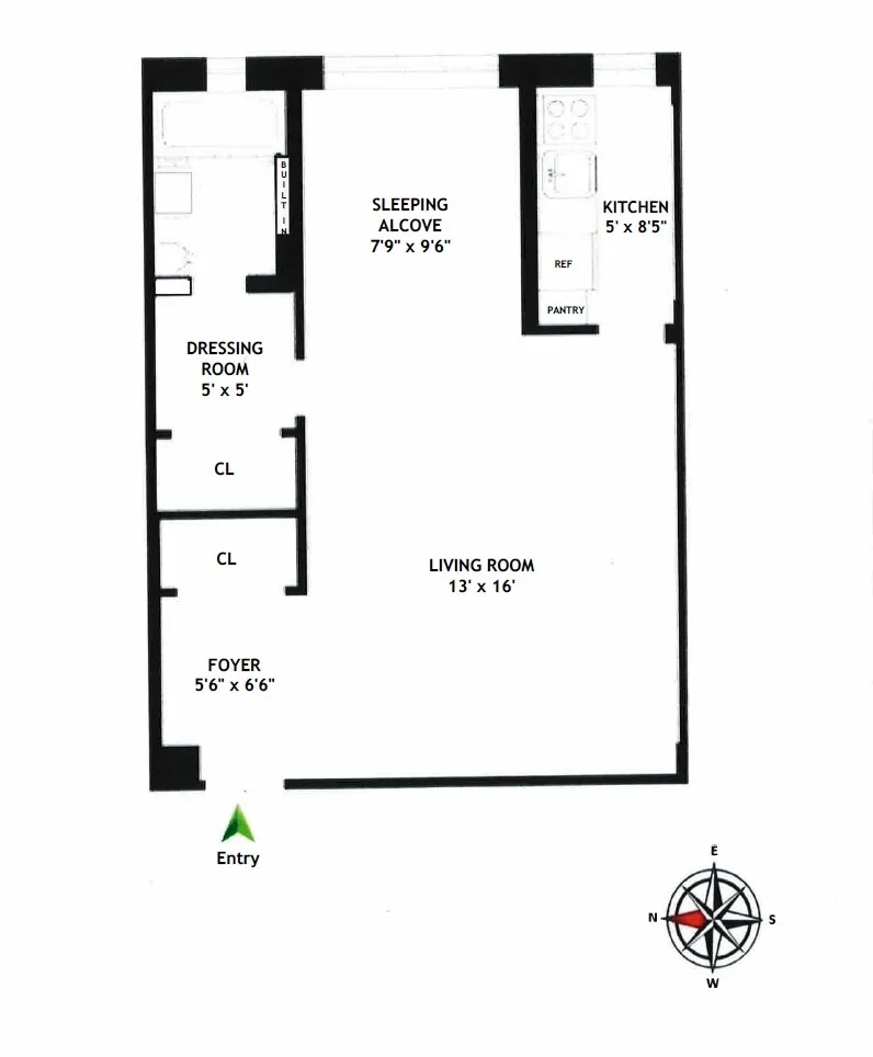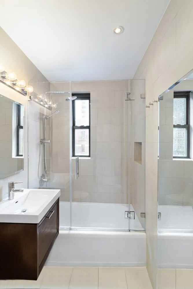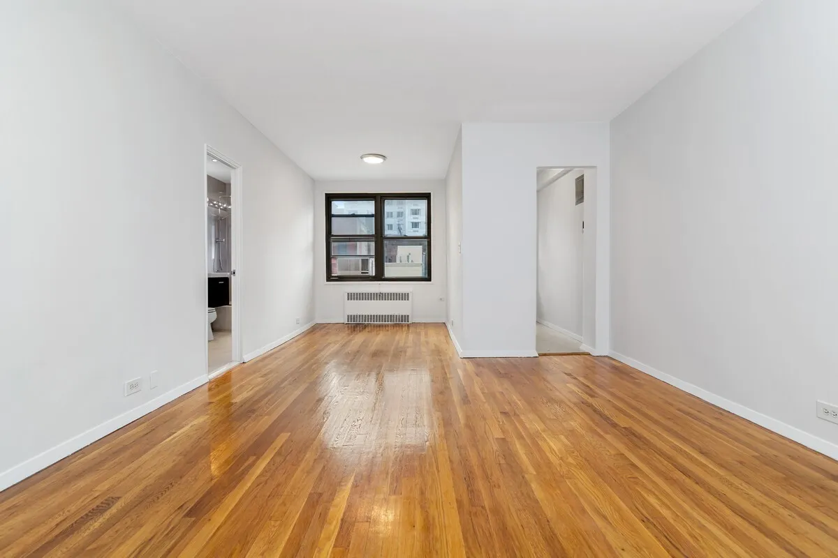 Covetable oversized alcove studio with sunny East exposures. The large, square shaped living room easily accommodates multiple living arrangements and is adjacent to a king-size sleeping alcove outfitted with CitiQuiet soundproof windows. Both the kitchen and renovated bath with adjacent dressing room are windowed. There are new stainless appliances in the kitchen and a dishwasher may be added with board approval. The spa-like bath is outfitted with Roca tiles, Century Bathworks mirrored storage and Grohe fixtures including a rainfall head with hand wand. Additional niceties include high ceilings, Lutron dimmers, white oak hardwood floors, wonderful storage from two double wide closets and upgraded electric with a 60 amp 8-circuit panel.